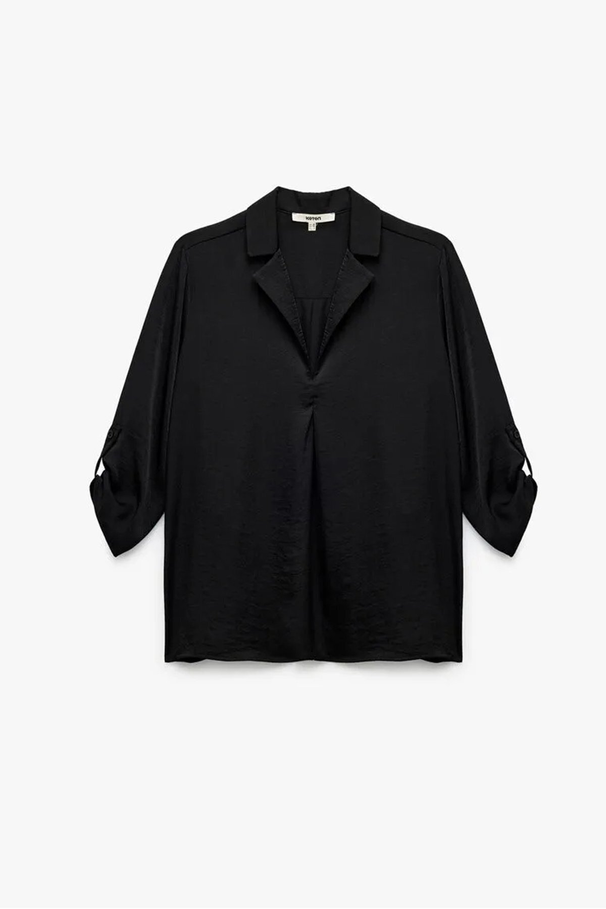 بلوز ساتن آستین بلند یقه چیندار 6WAK60004PW
