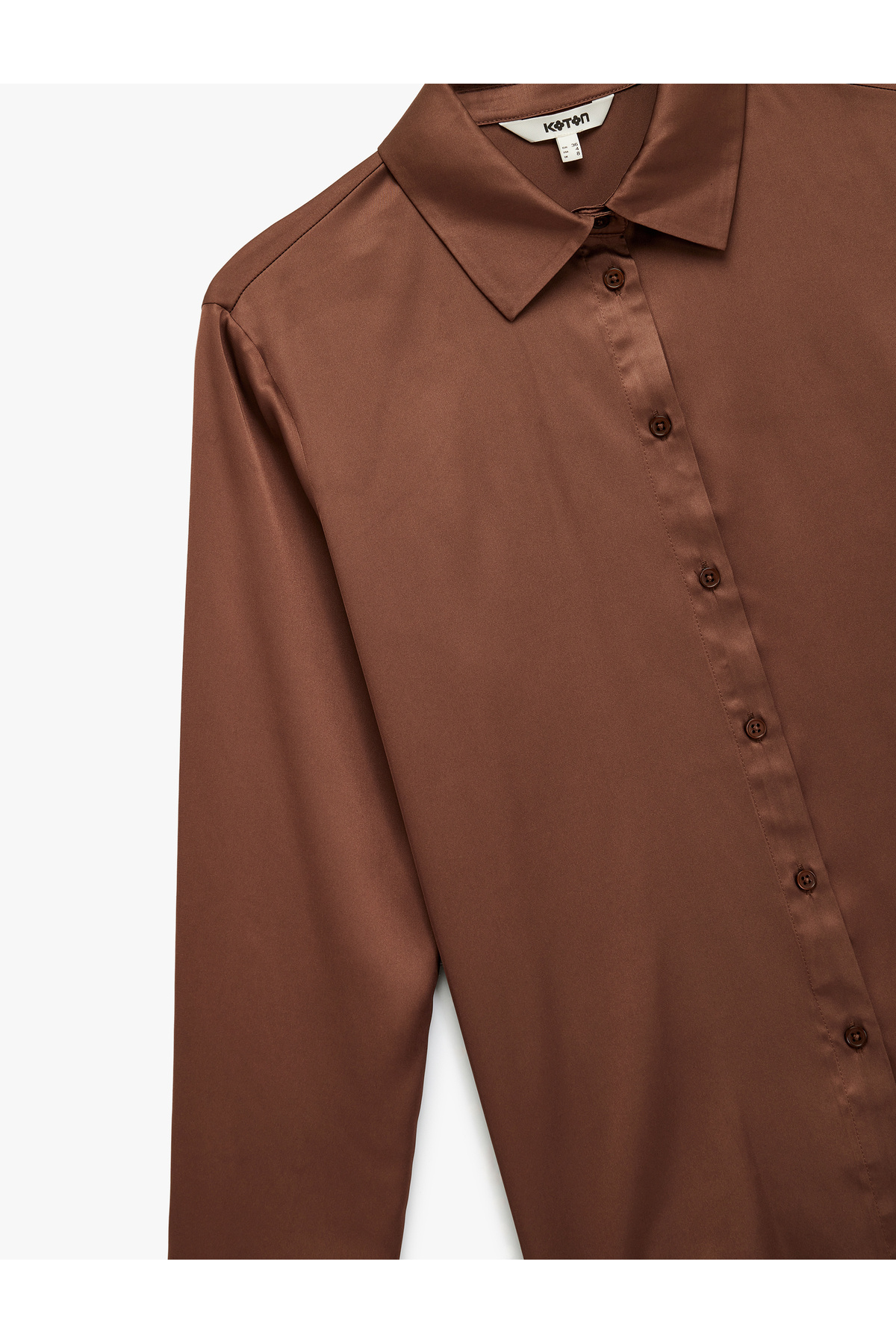 پیراهن ساتن آستین بلند دکمه‌دار معمولی