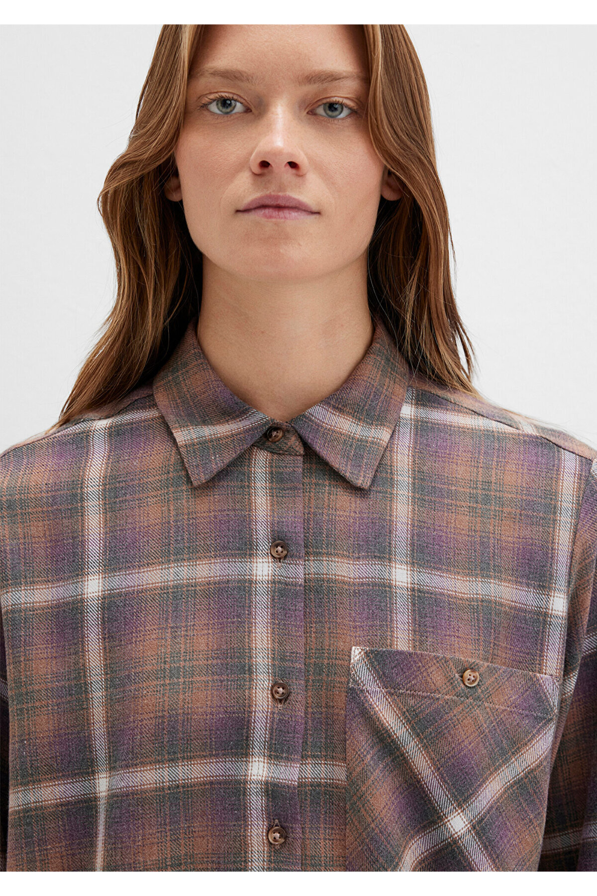 پیراهن قهوه‌ای چهارخانه گشاد / برش آزاد و راحت ۱۲۱۱۲۸۴-۸۳۱۶۹