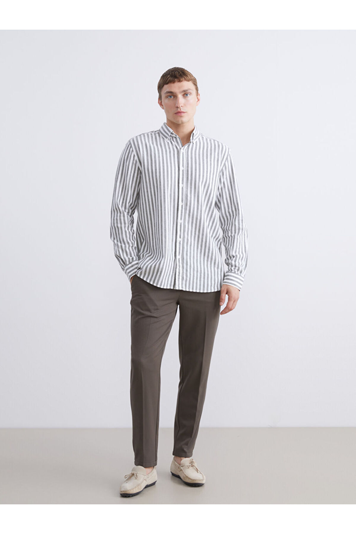 انتخابهای درخشان از فروشگاه Shining | پیراهن مردانه راه راه کتانی طرح معمولی