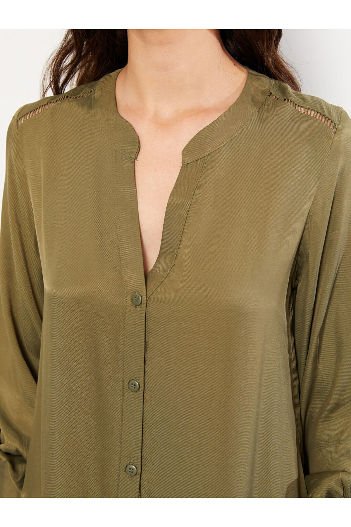 پیراهن زنانه گاباردین آستین بلند ساده یقه باز خاکی