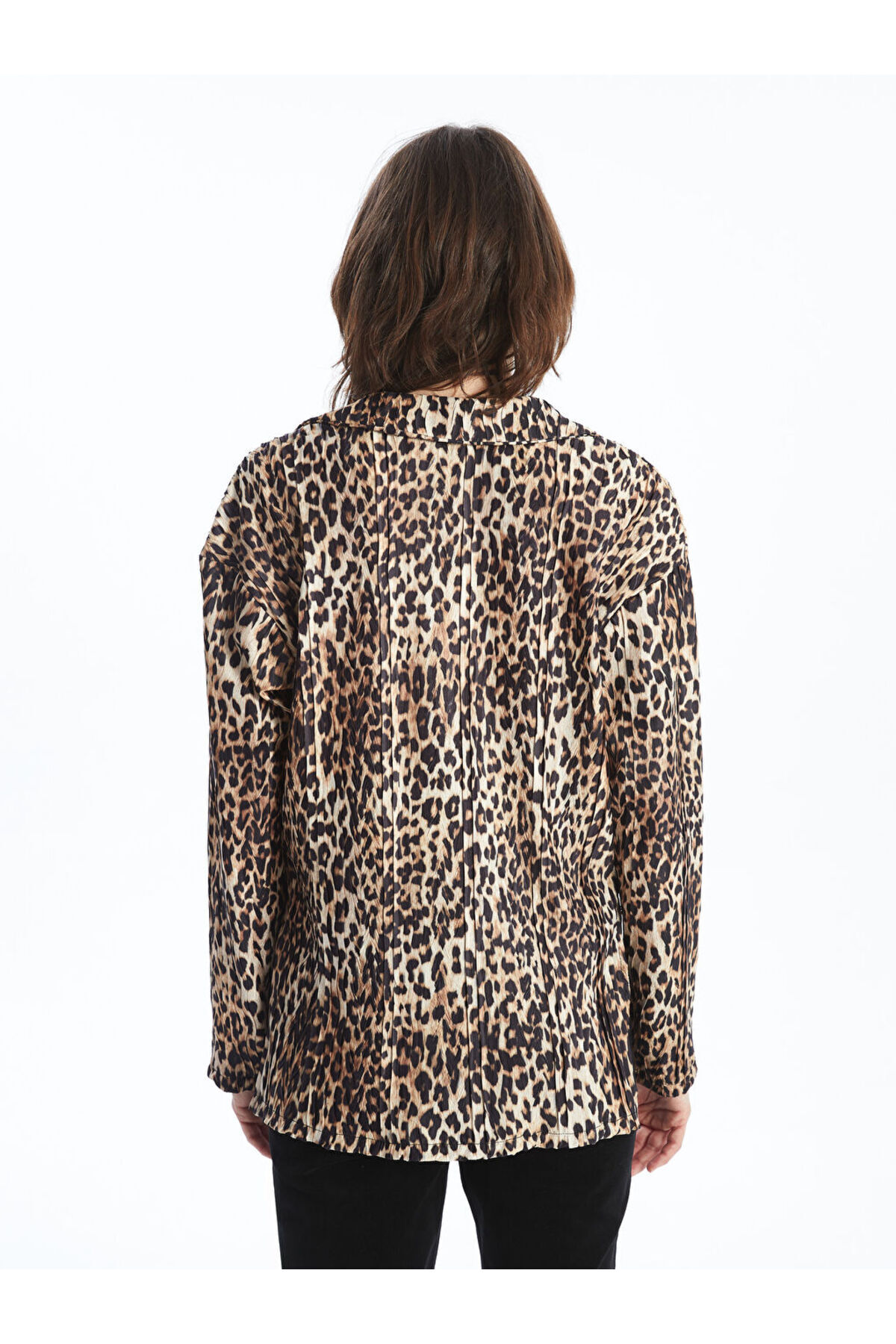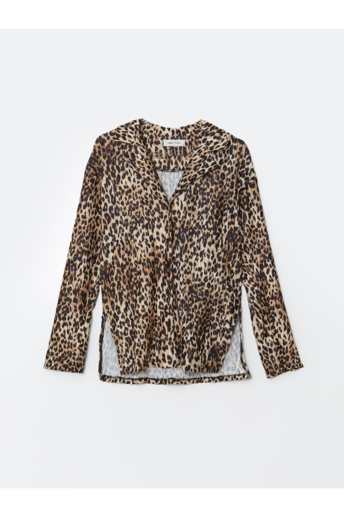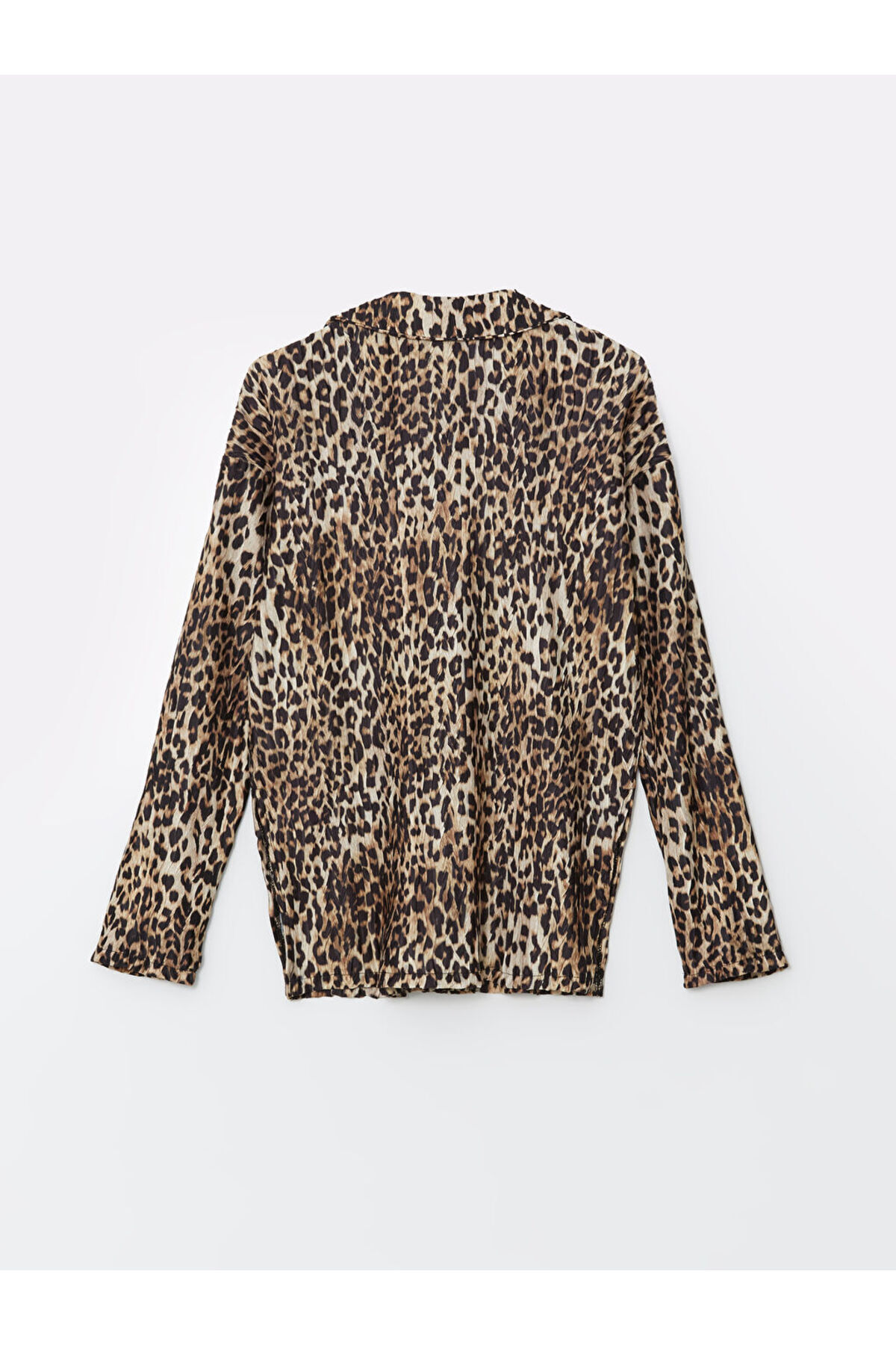بلوز زنانه طرح پلنگی یقه پیراهن زرد