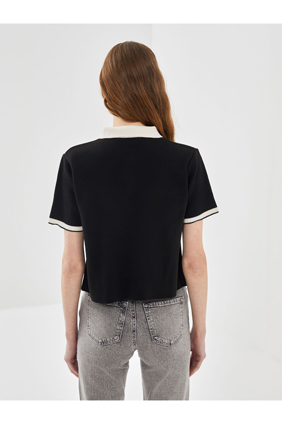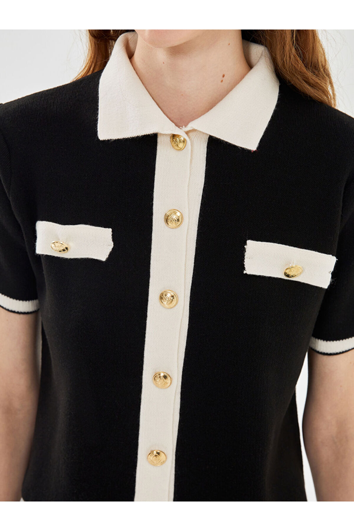 ژاکت بافتنی زنانه با یقه پیراهن مشکی و رنگ مسدود کننده