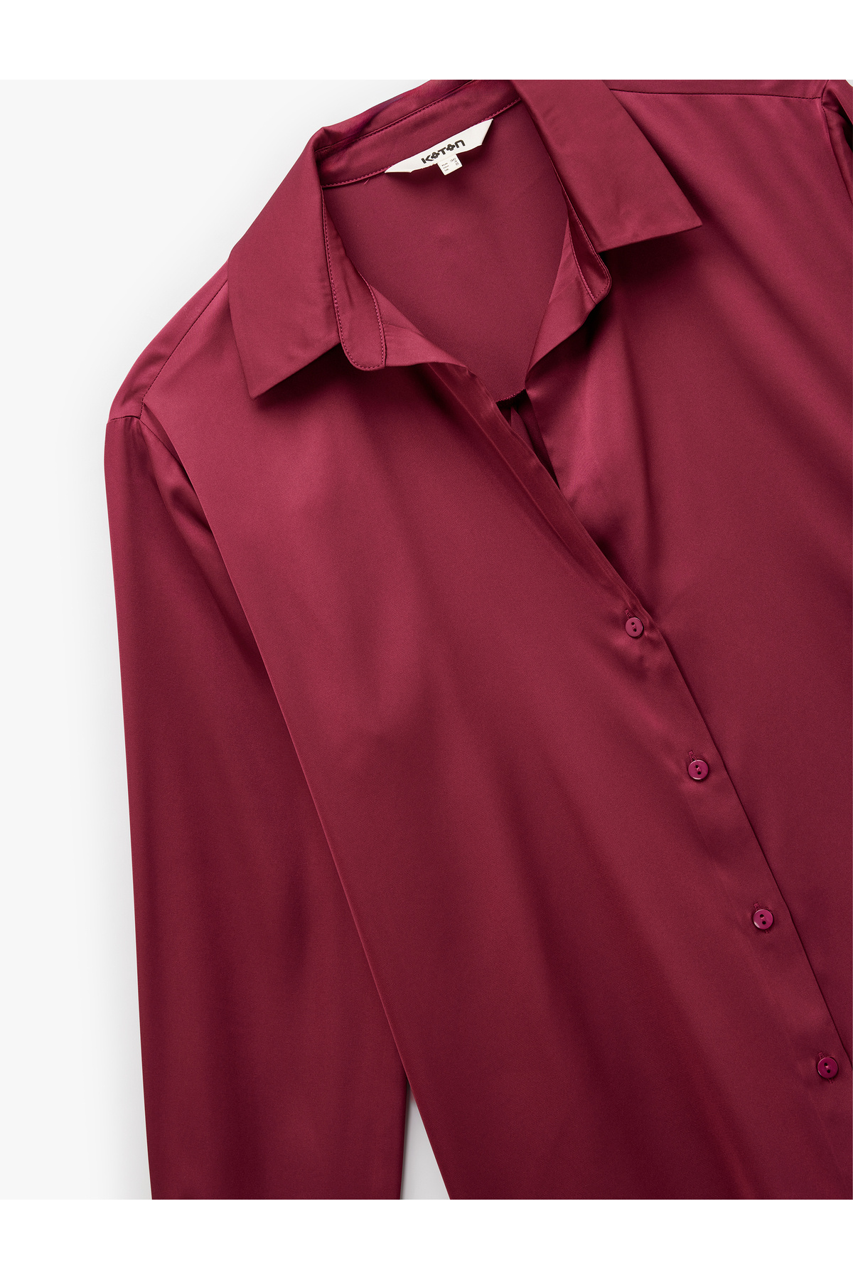 پیراهن ساتن دکمه‌دار آستین بلند معمولی