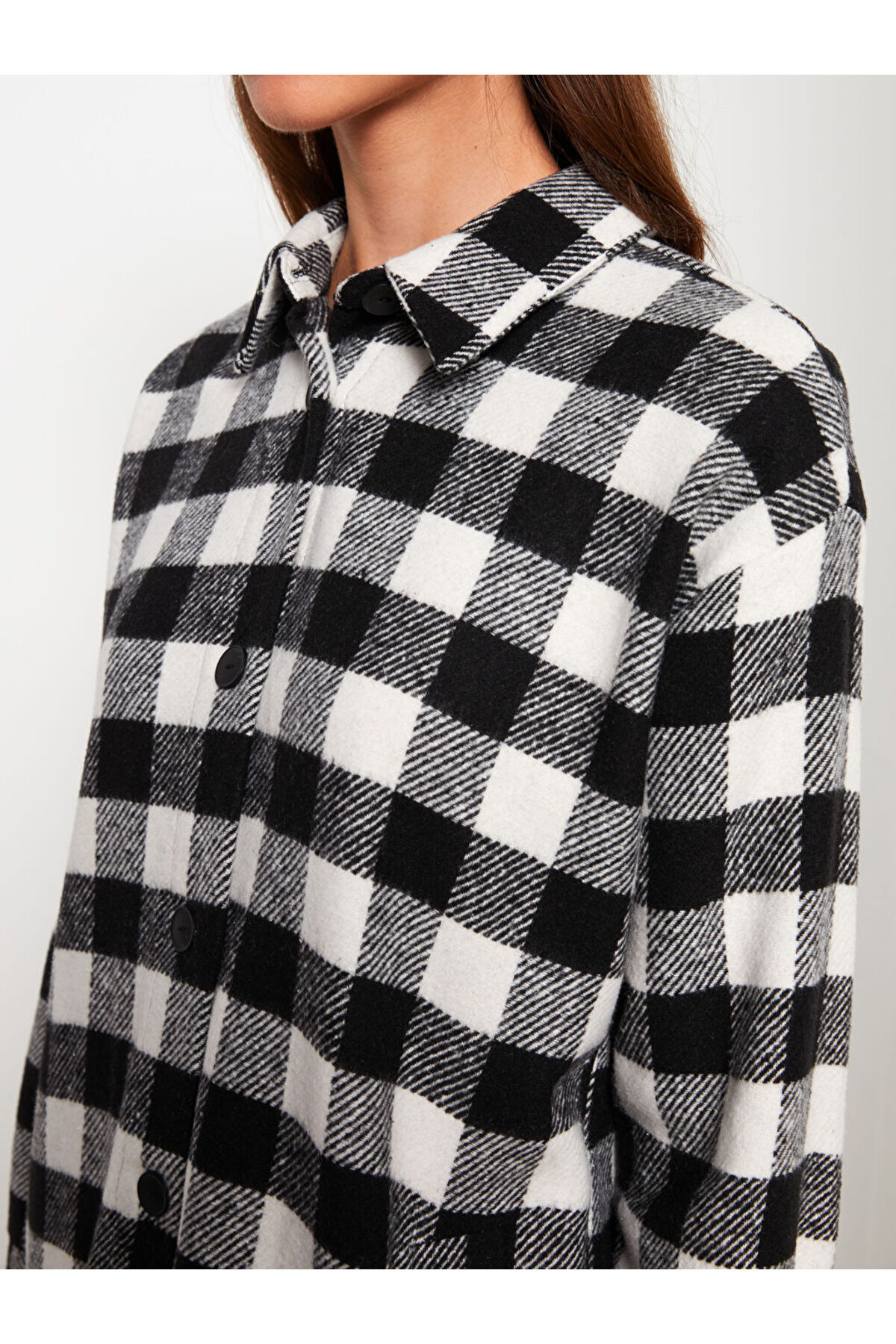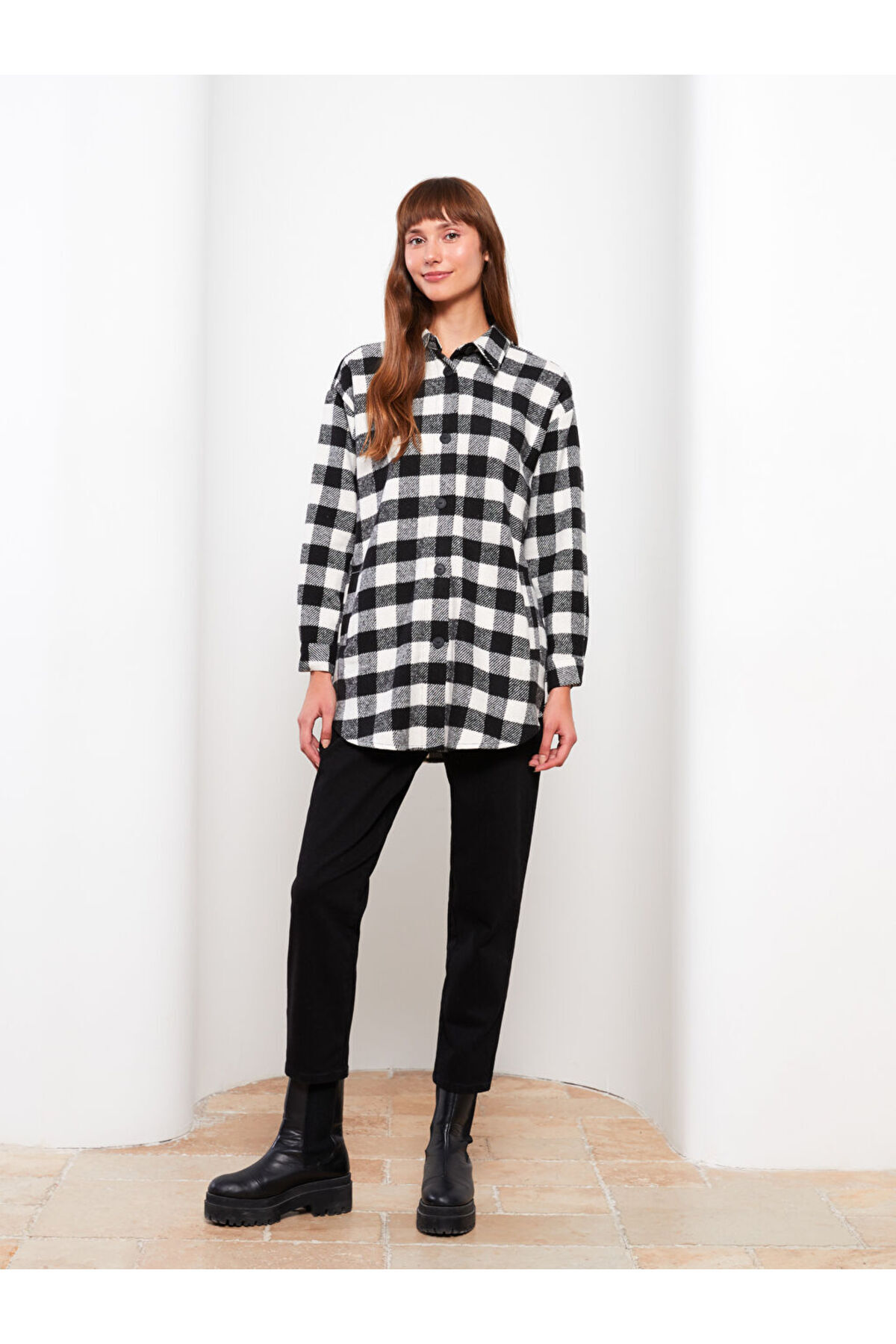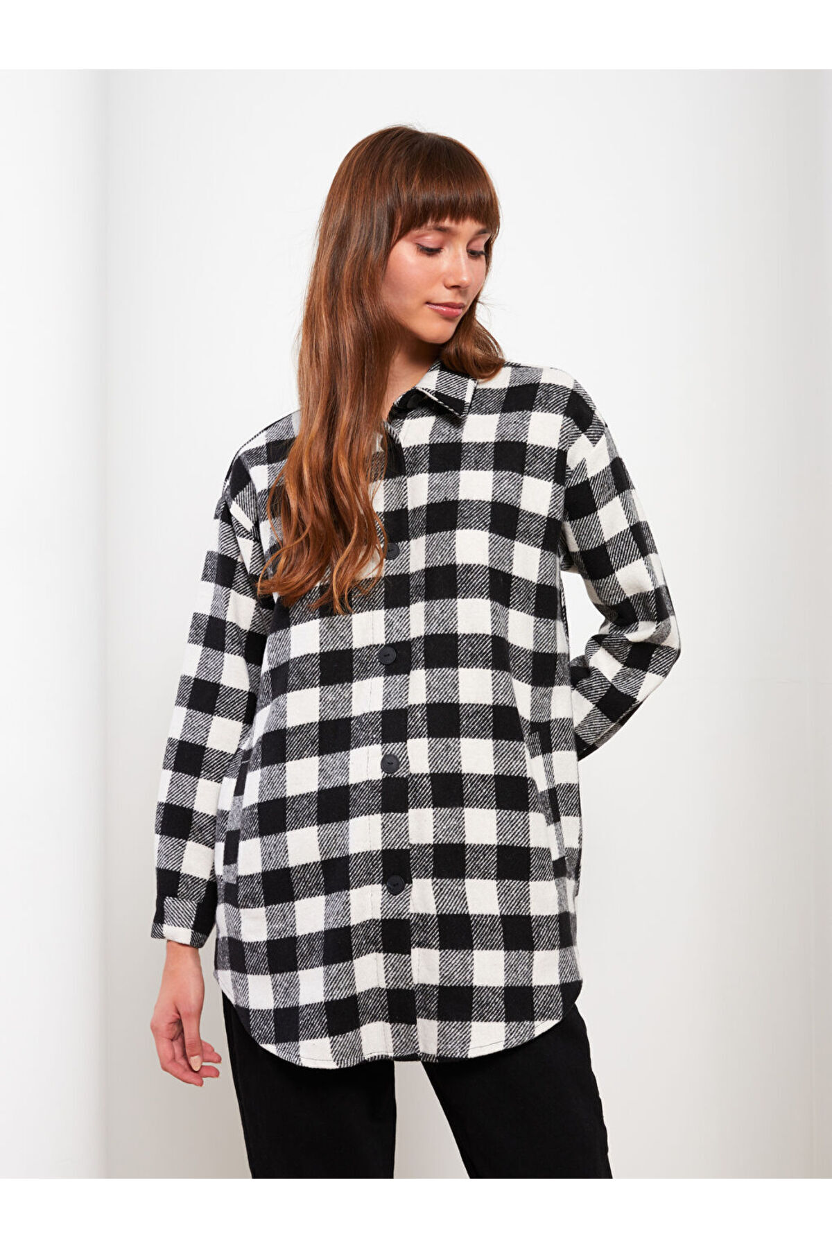 ژاکت پیراهن زنانه گاباردین آستین بلند چهارخانه سایز بزرگ