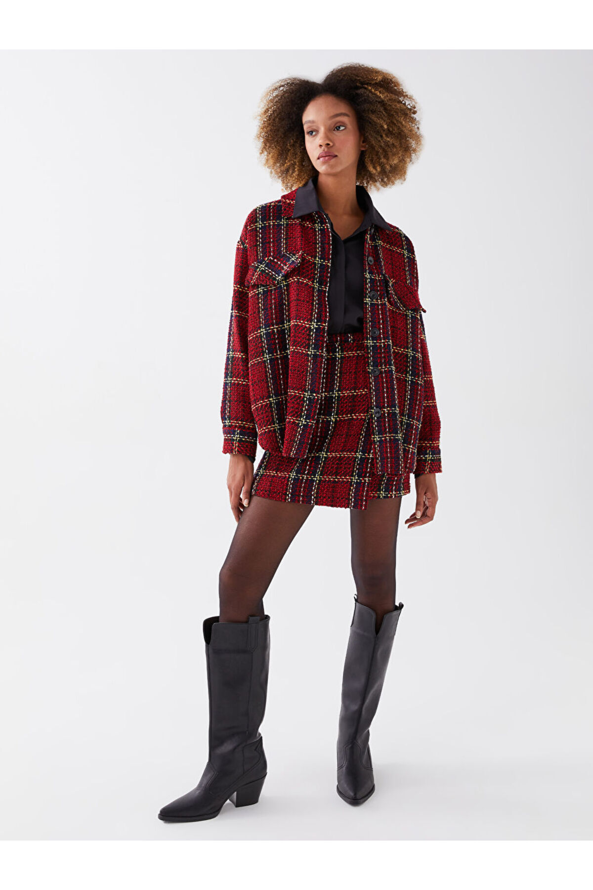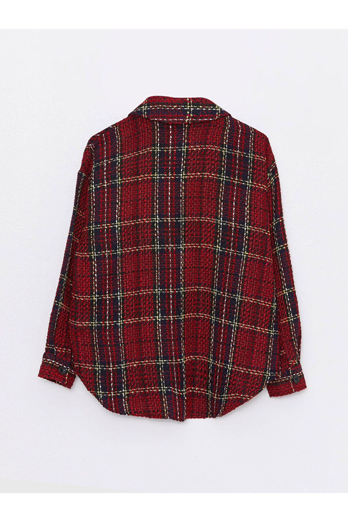 پیراهن زنانه آستین بلند چهارخانه جلو دکمه‌دار قرمز