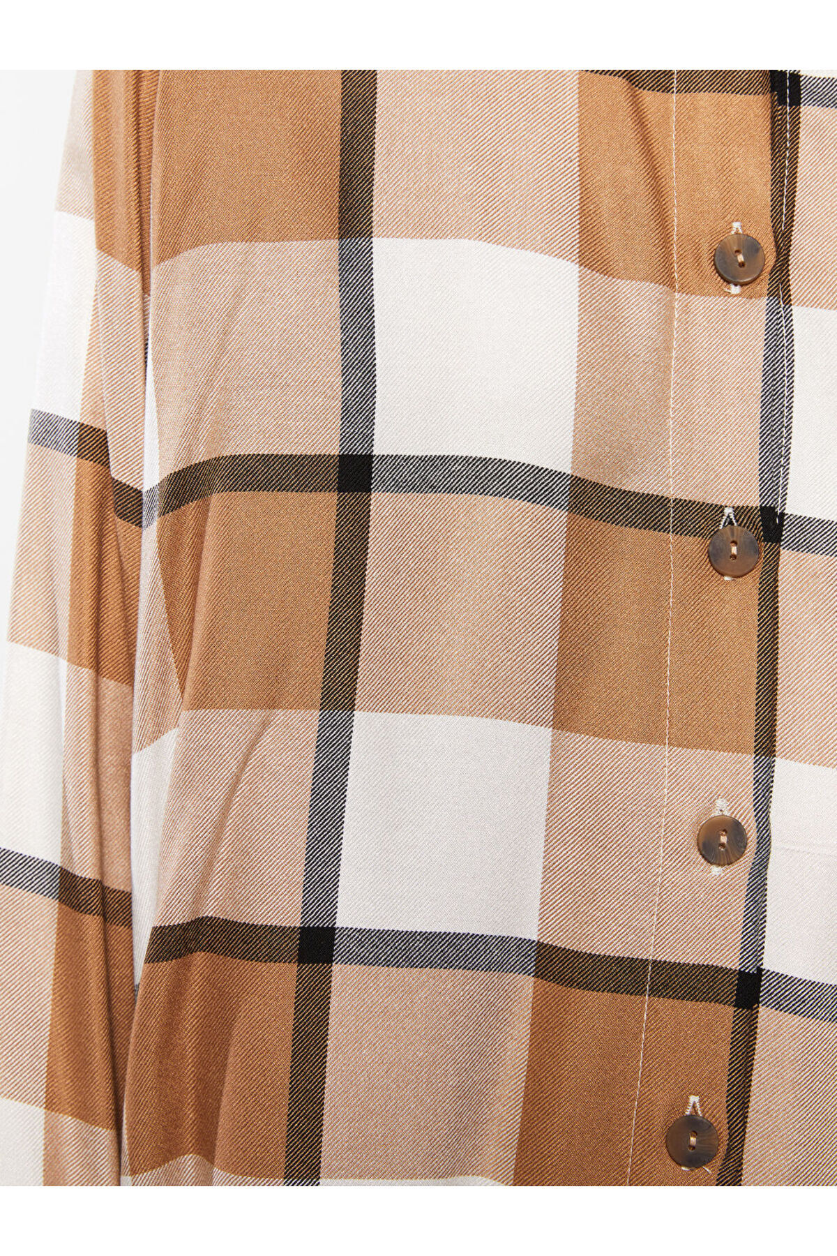 تونیک پیراهن زنانه آستین بلند چهارخانه بژ