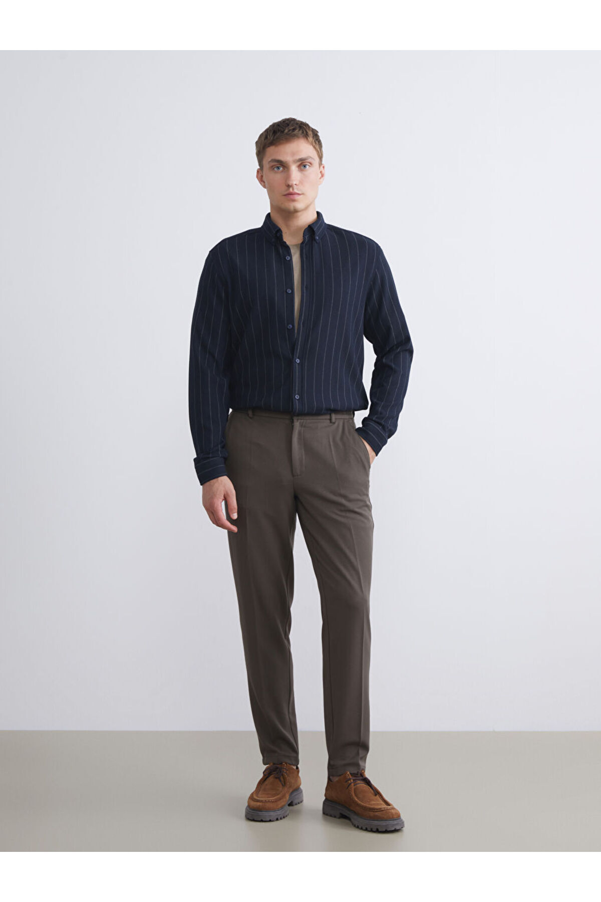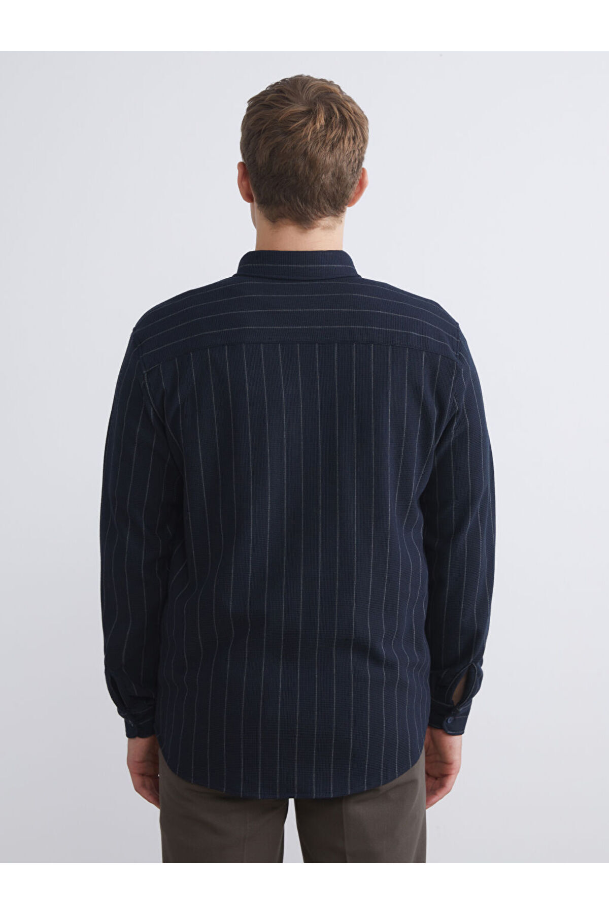 لباس‌های باکیفیت از فروشگاه چلبی | پیراهن مردانه راه‌راه آستین بلند اسلیم فیت