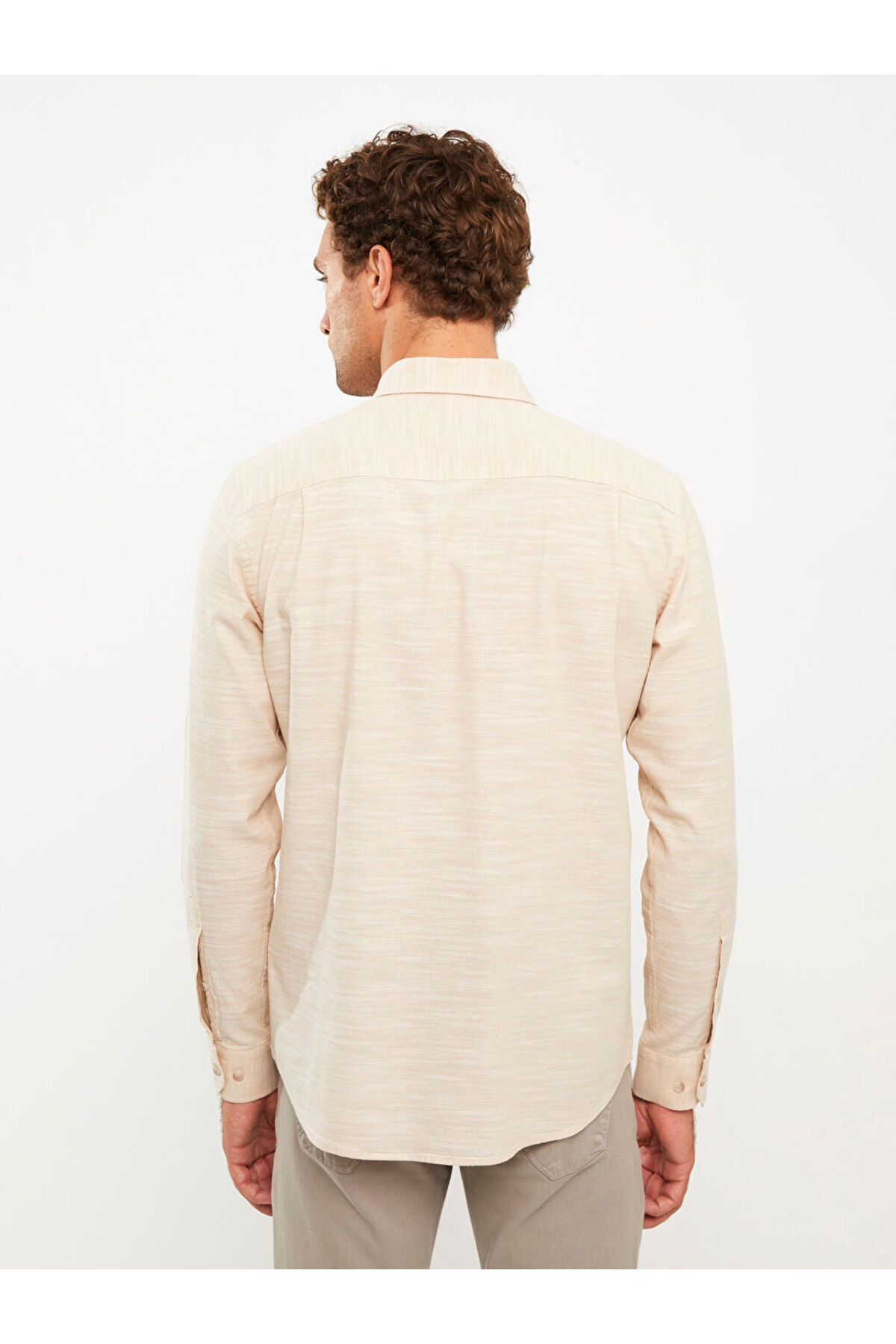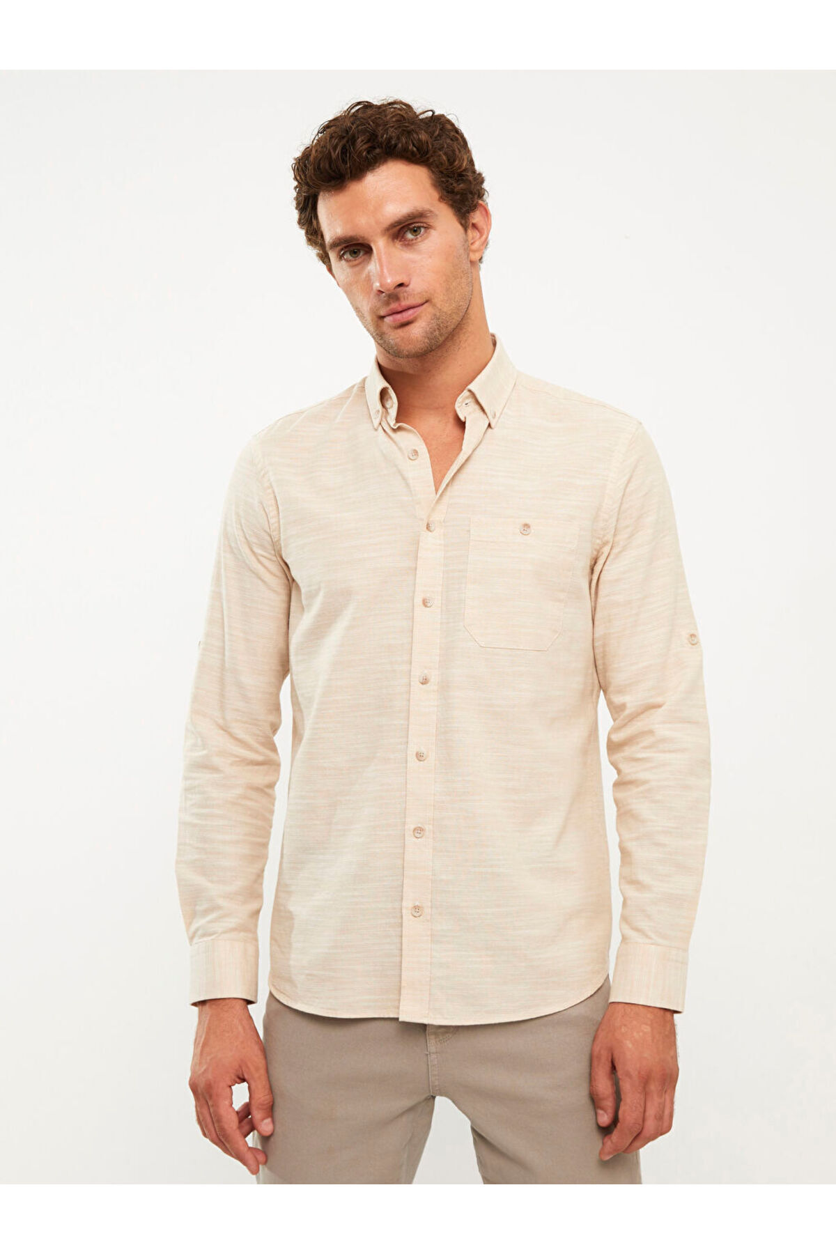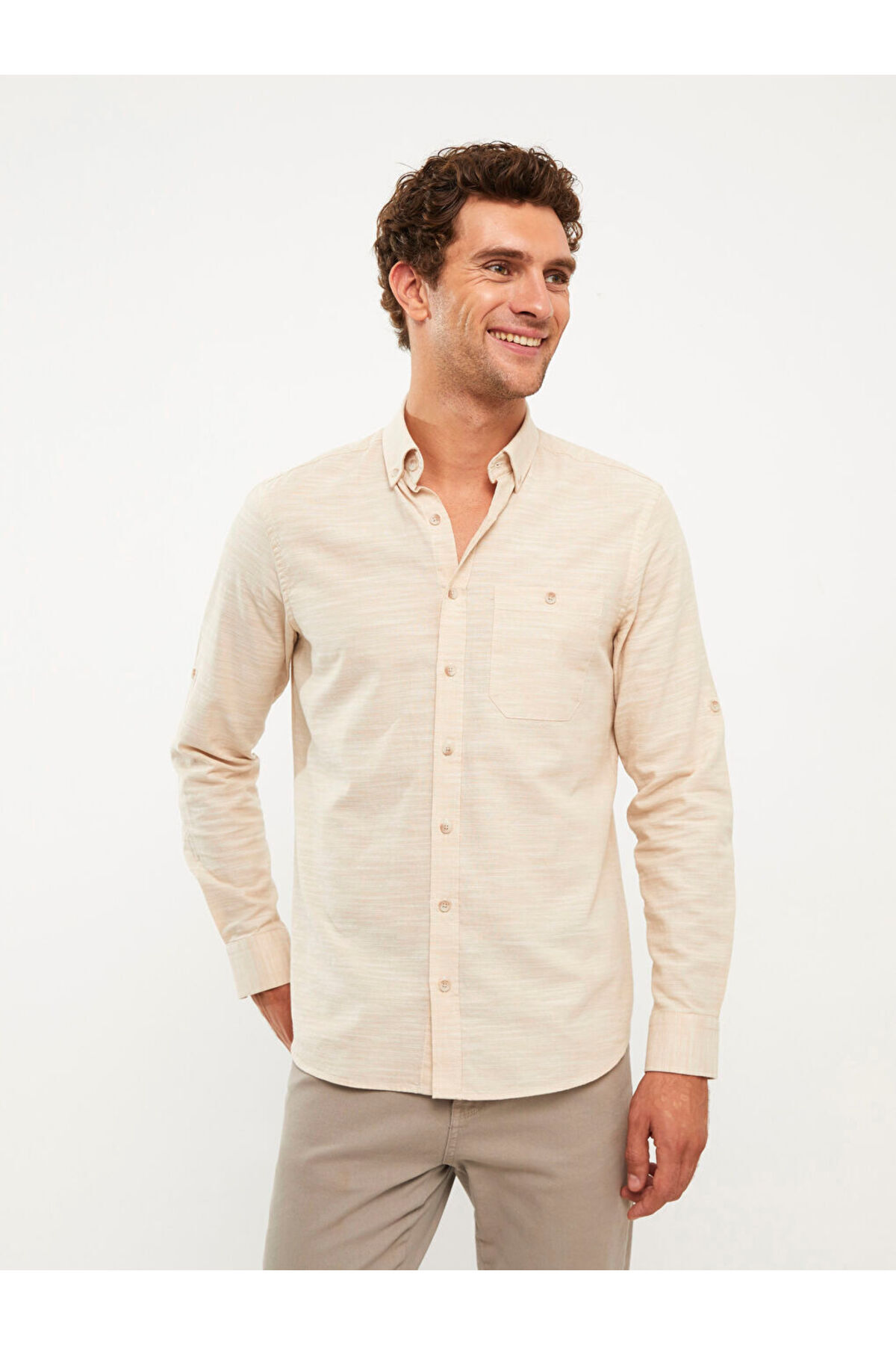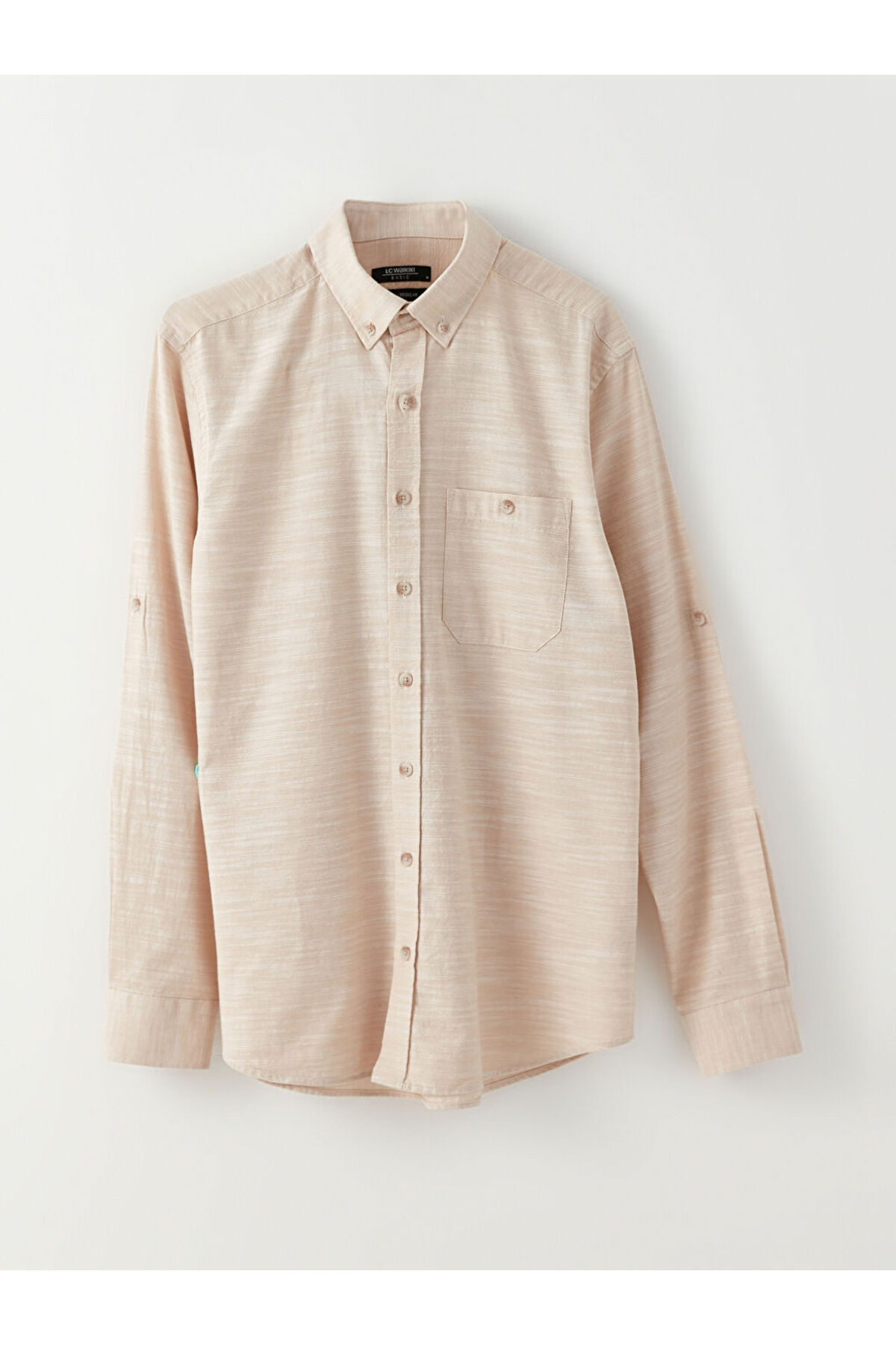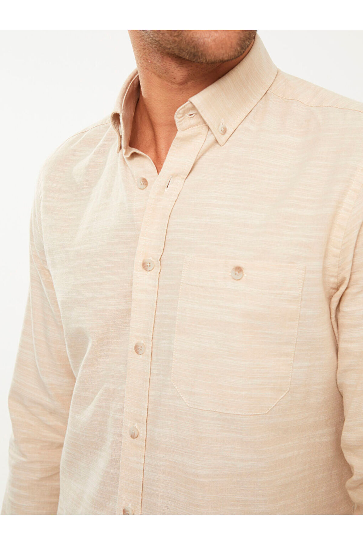 پیراهن مردانه طرح‌دار آستین بلند بژ معمولی فیت