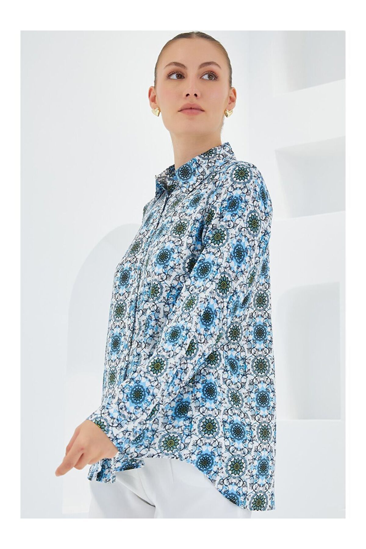 پیراهن طرحدار گرافیکی ۳۷۲۱ – فیروزهای