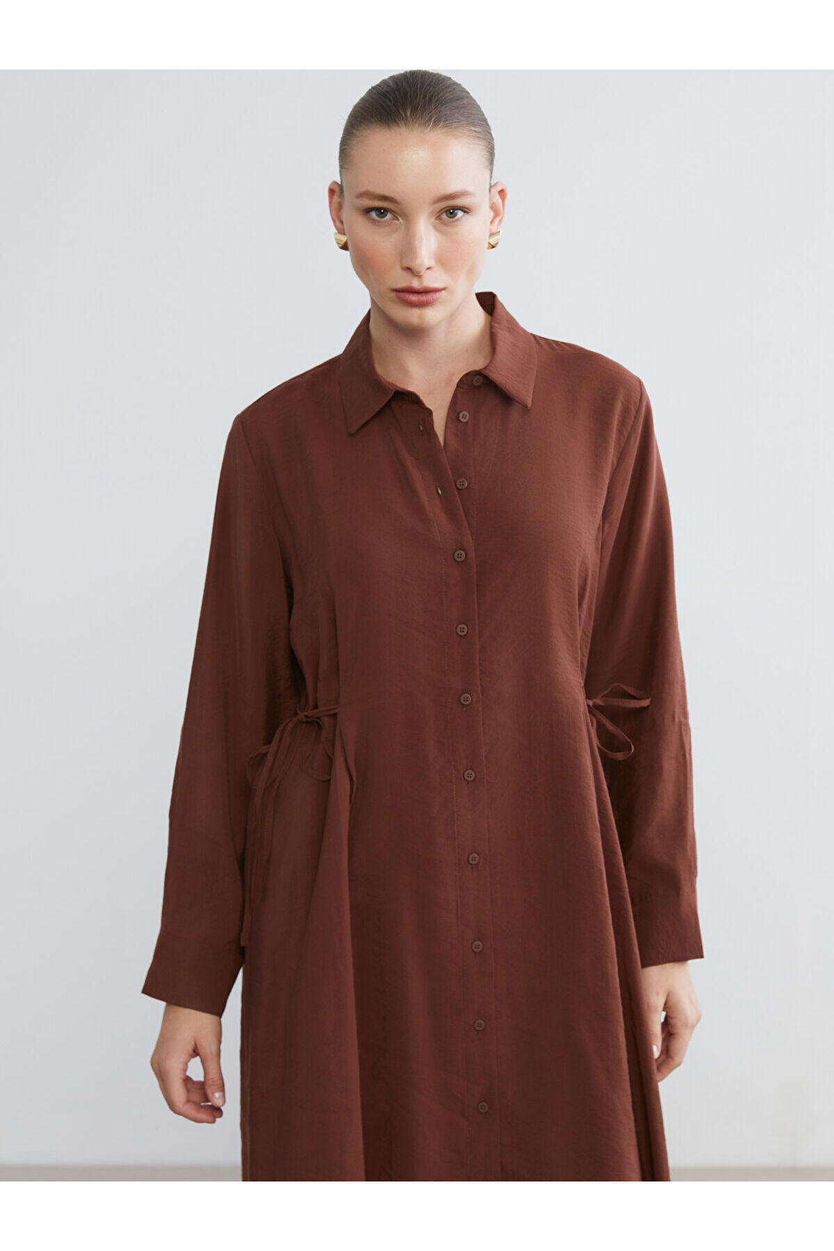 پیراهن ال سی وایکیکی قهوه ای آستین چین دار مودال | | نمایندگی ال سی وایکیکی