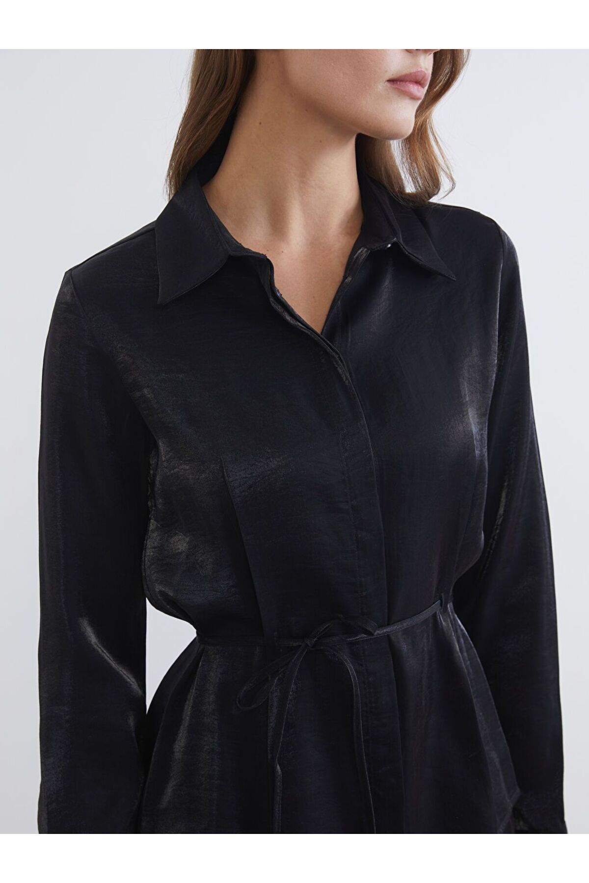 پیراهن زنانه کمربنددار کلاسیک LCWAIKIKI با بافت براق