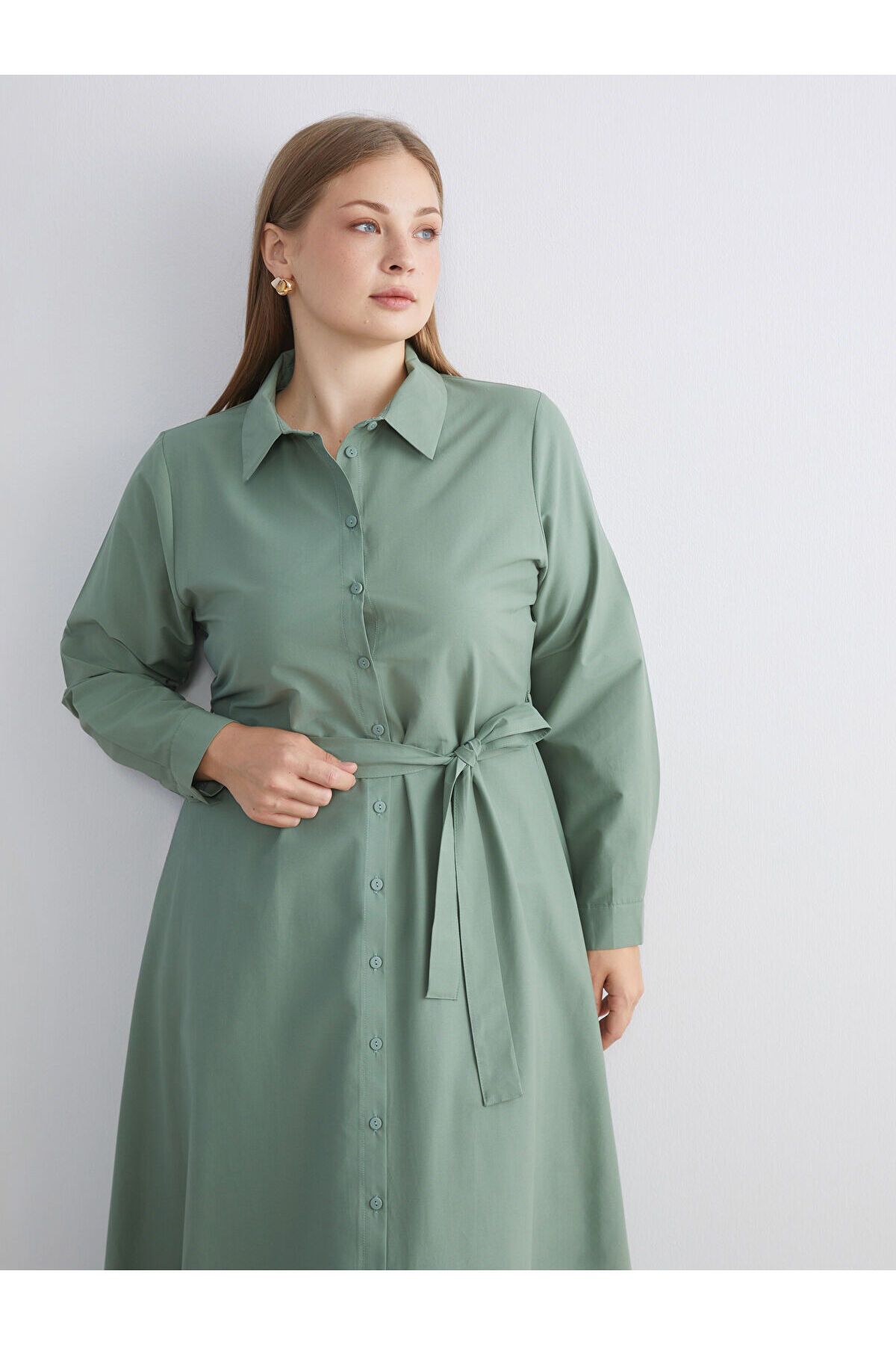 پیراهن پوپلین کمربنددار سایز بزرگ فصل جدید Özmarka