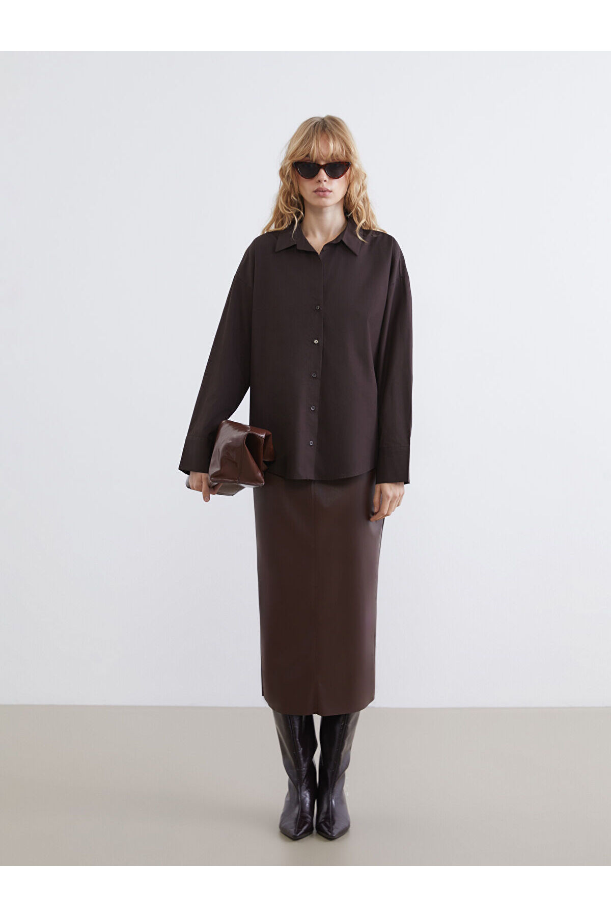 پیراهن ال سی وایکیکی قهوه ای آستین بلند پنبه | | نمایندگی ال سی وایکیکی