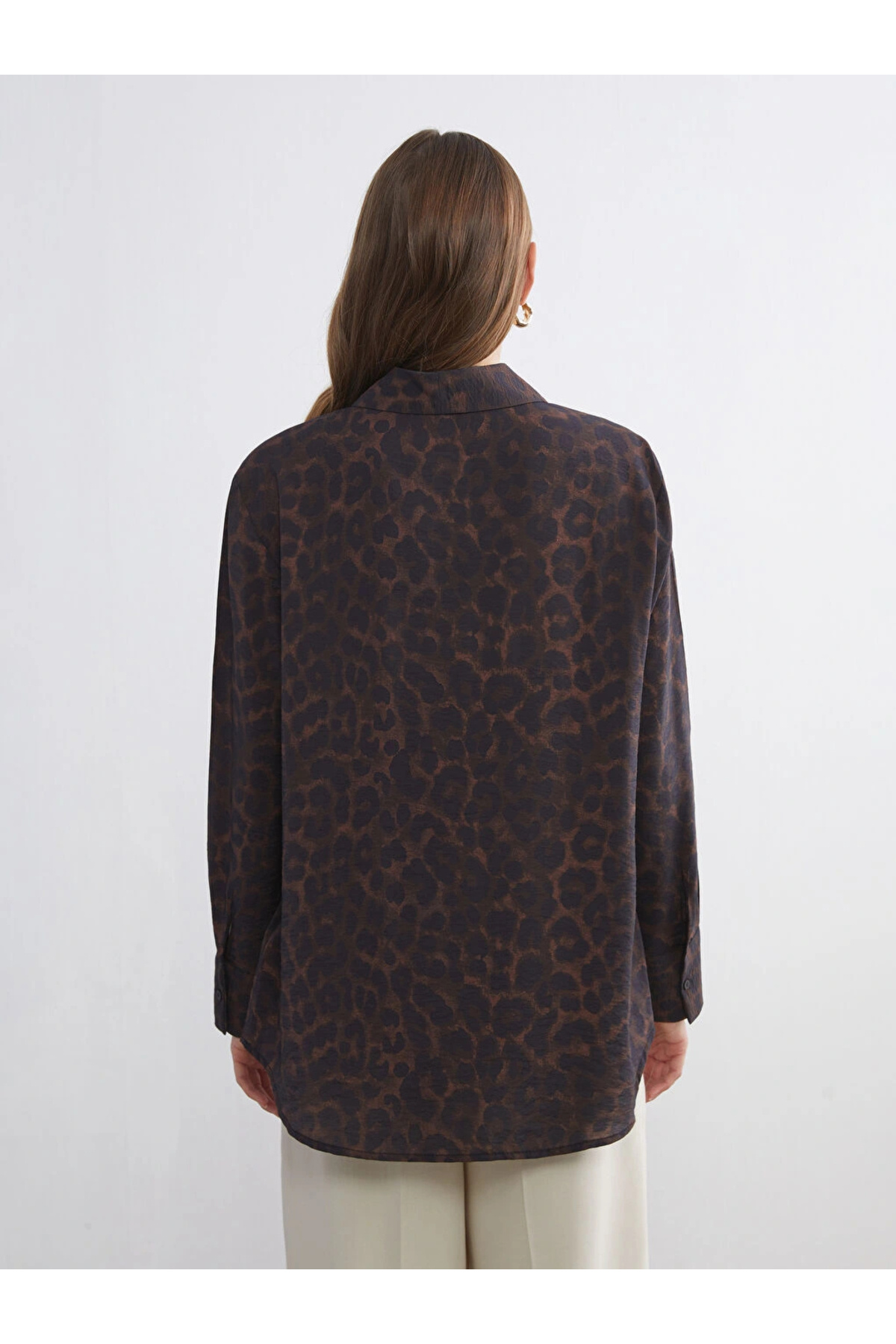 پیراهن زنانه طرح پلنگی قهوهای کلاسیک LCWAIKIKI