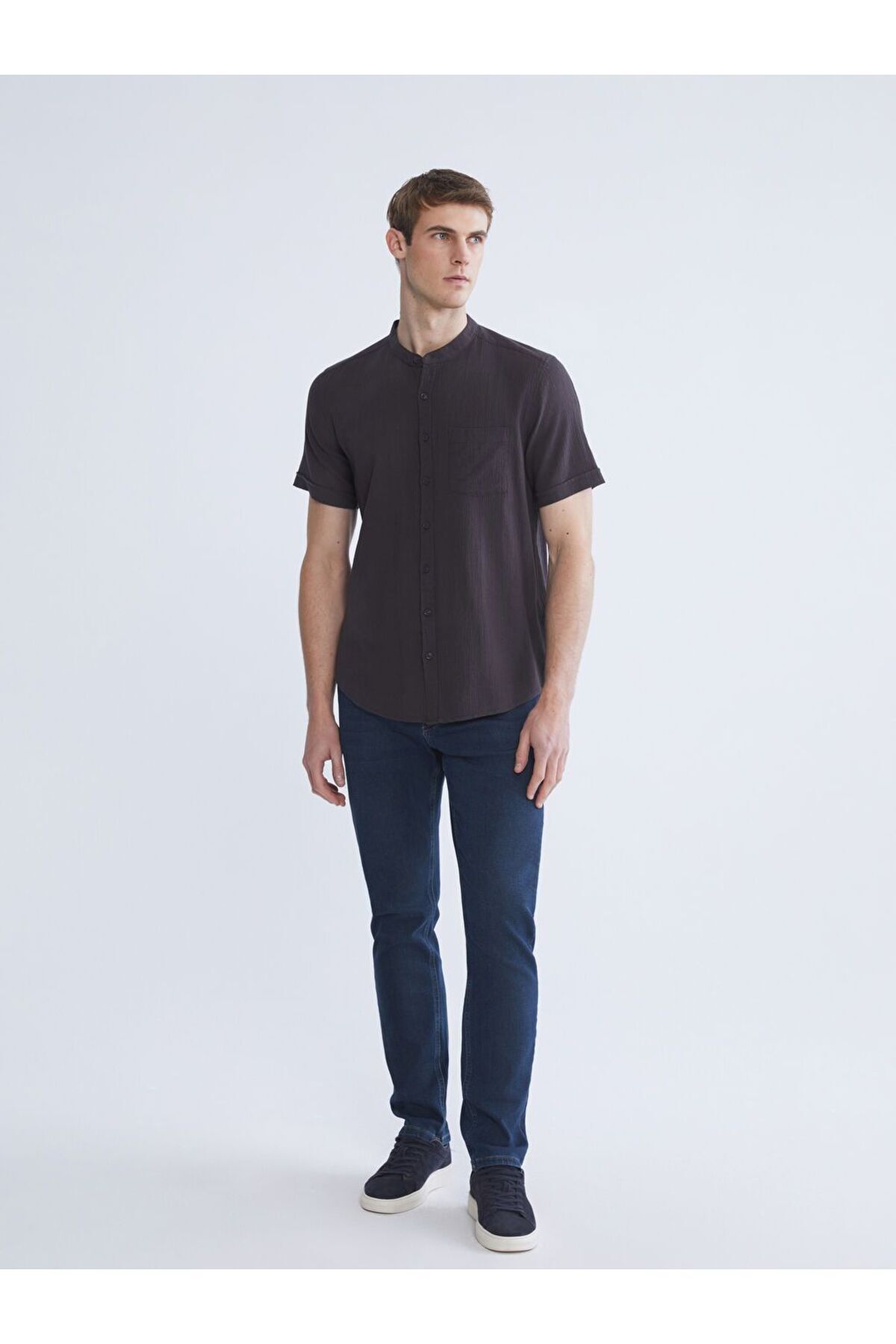 پیراهن مردانه آستین کوتاه یقه ماندارین معمولی