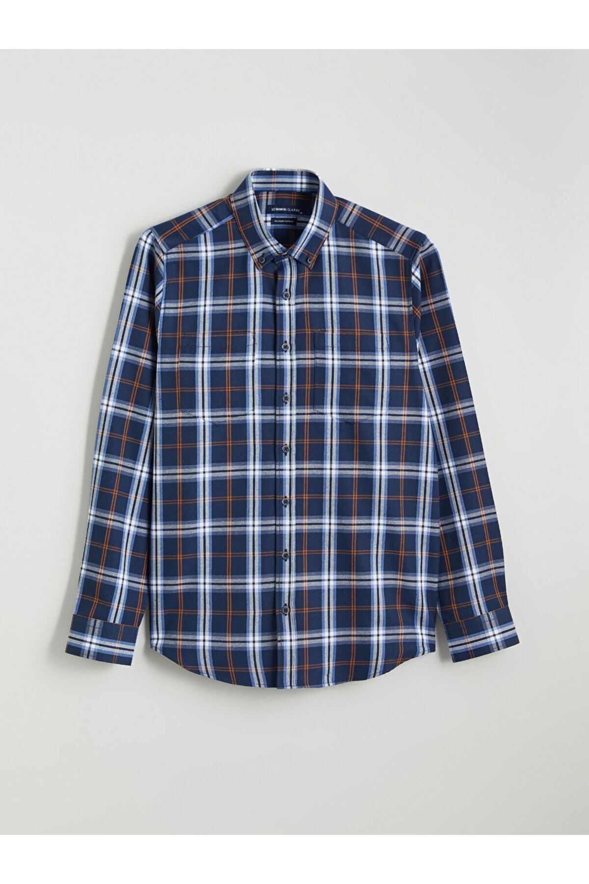 پیراهن مردانه آستین بلند چهارخانه معمولی