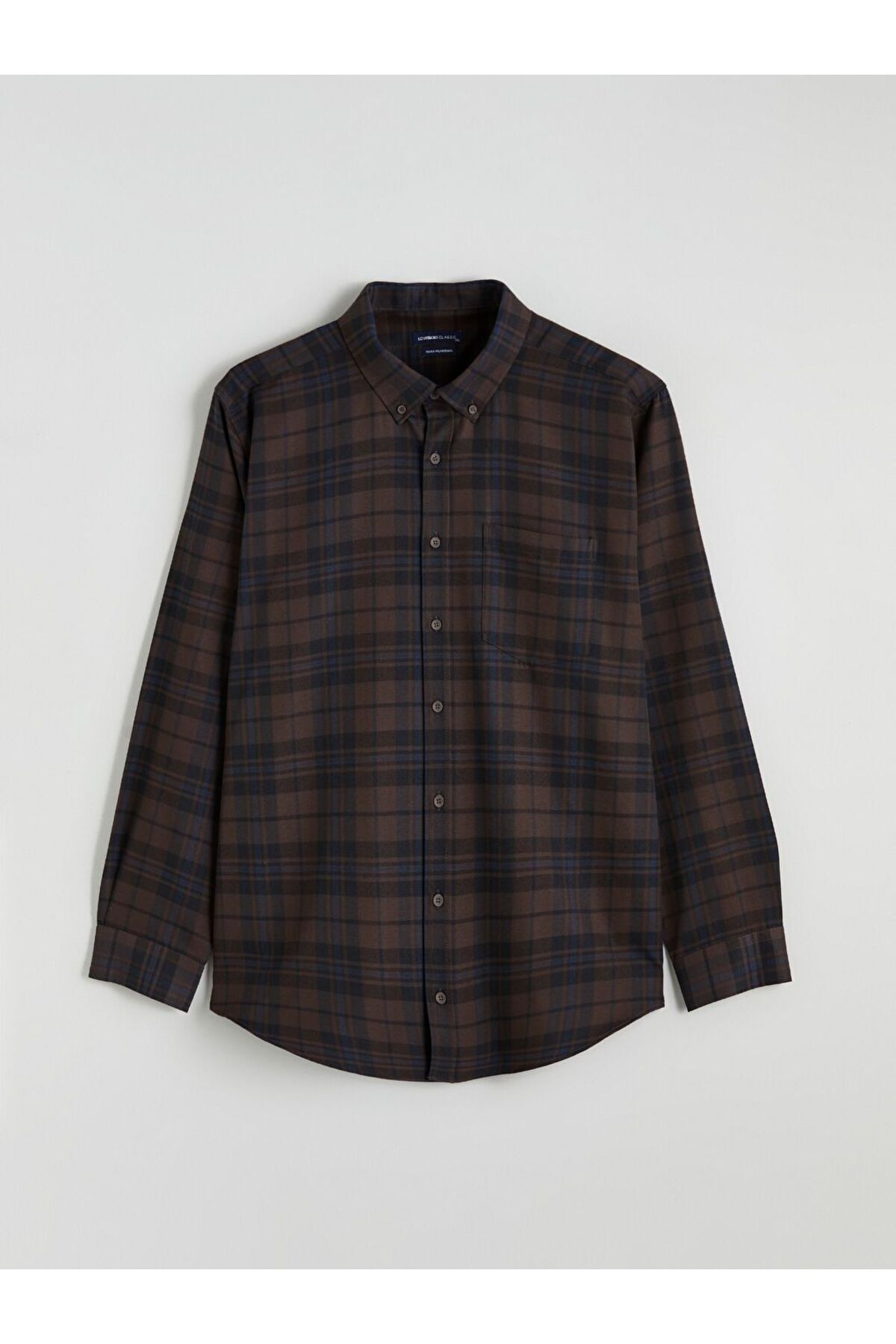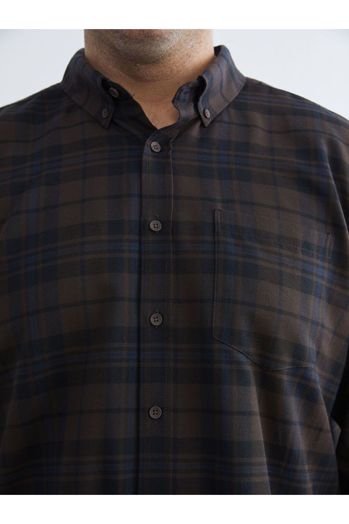 پیراهن مردانه گاباردین طرح چهارخانه آستین بلند معمولی