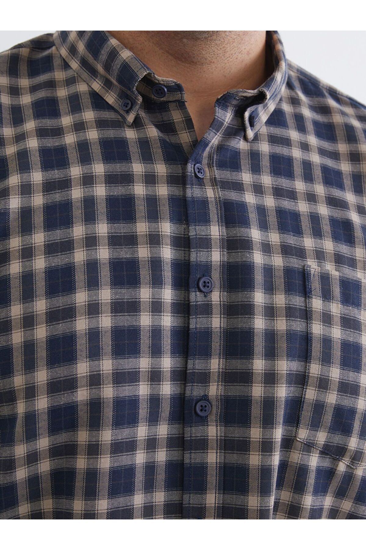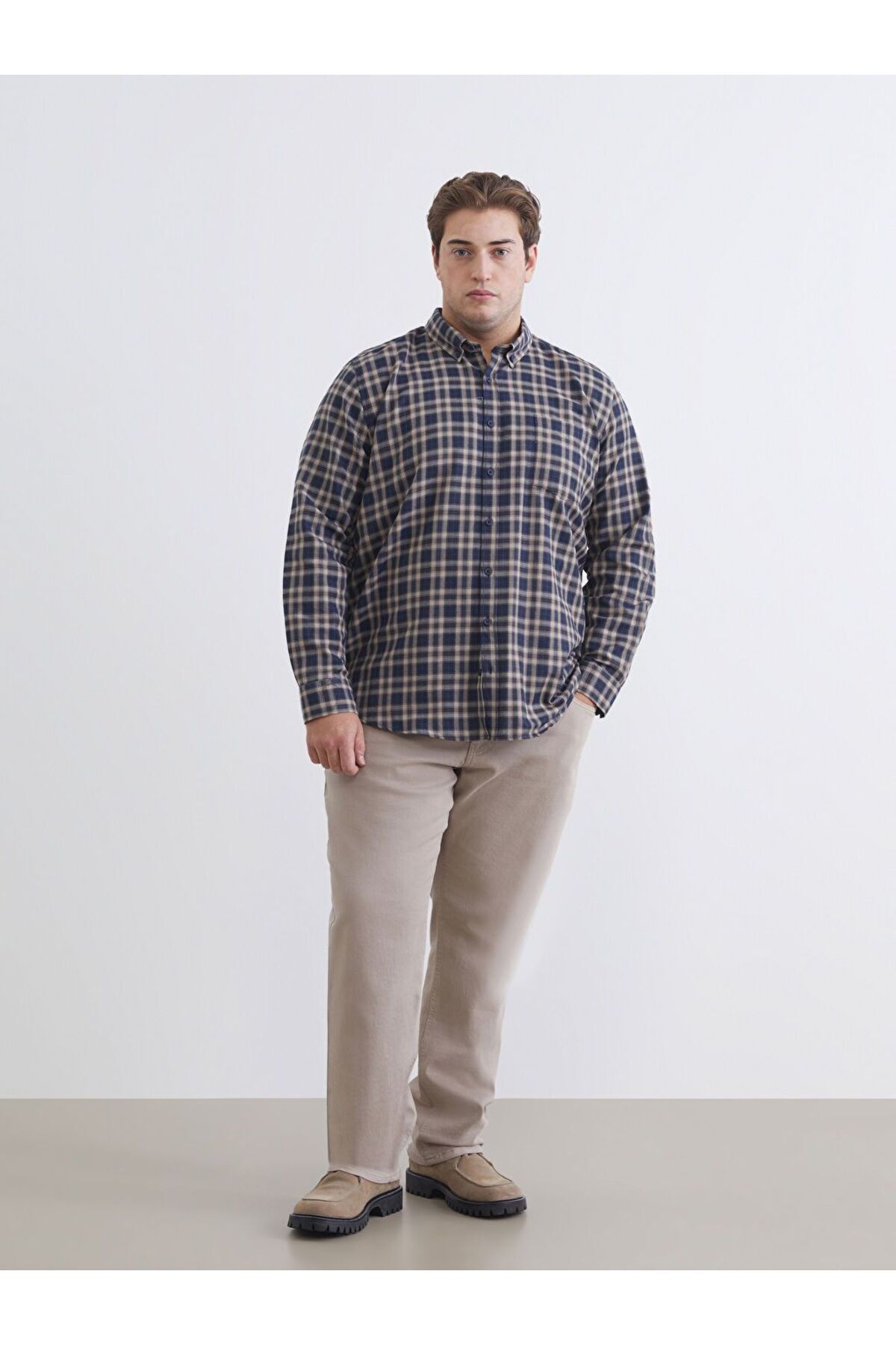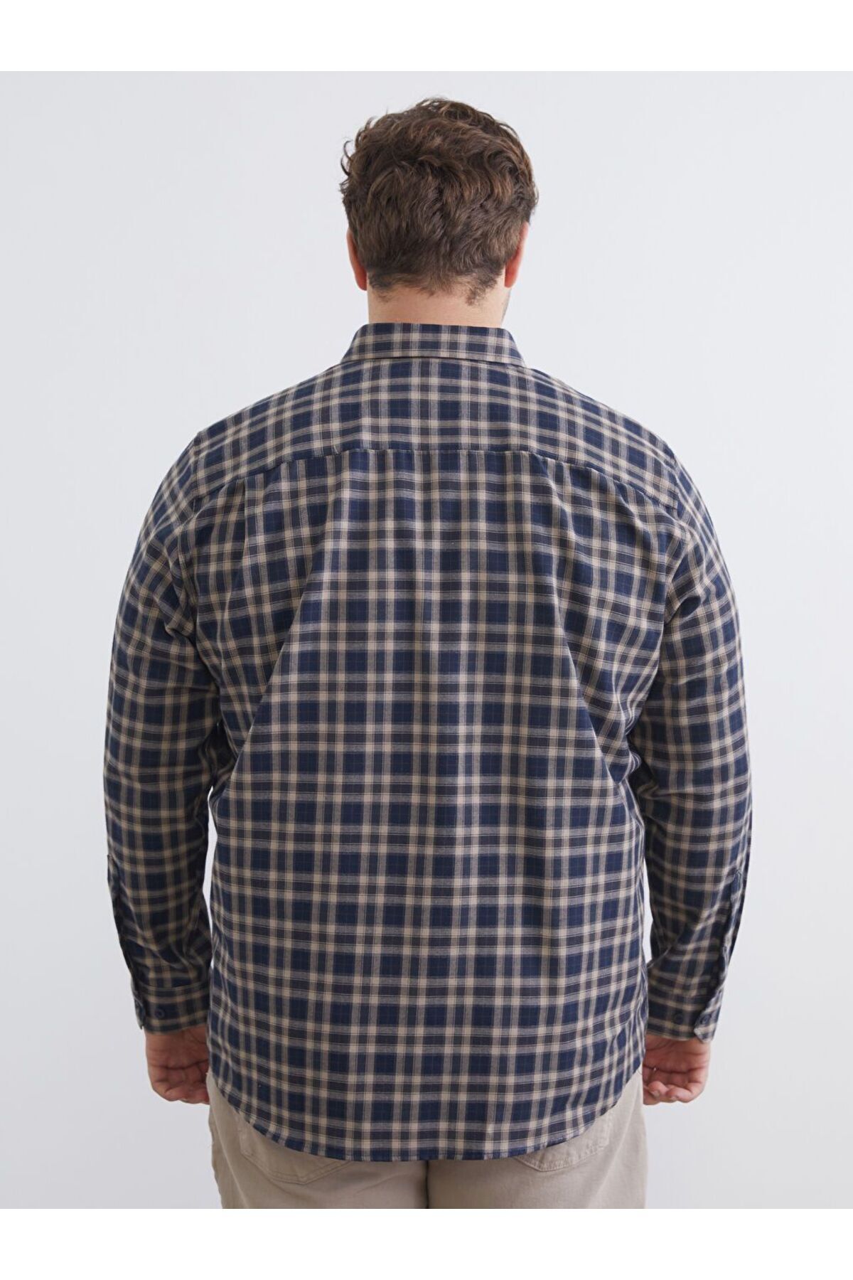 پیراهن مردانه گاباردین آستین بلند چهارخانه سایز بزرگ سایز معمولی
