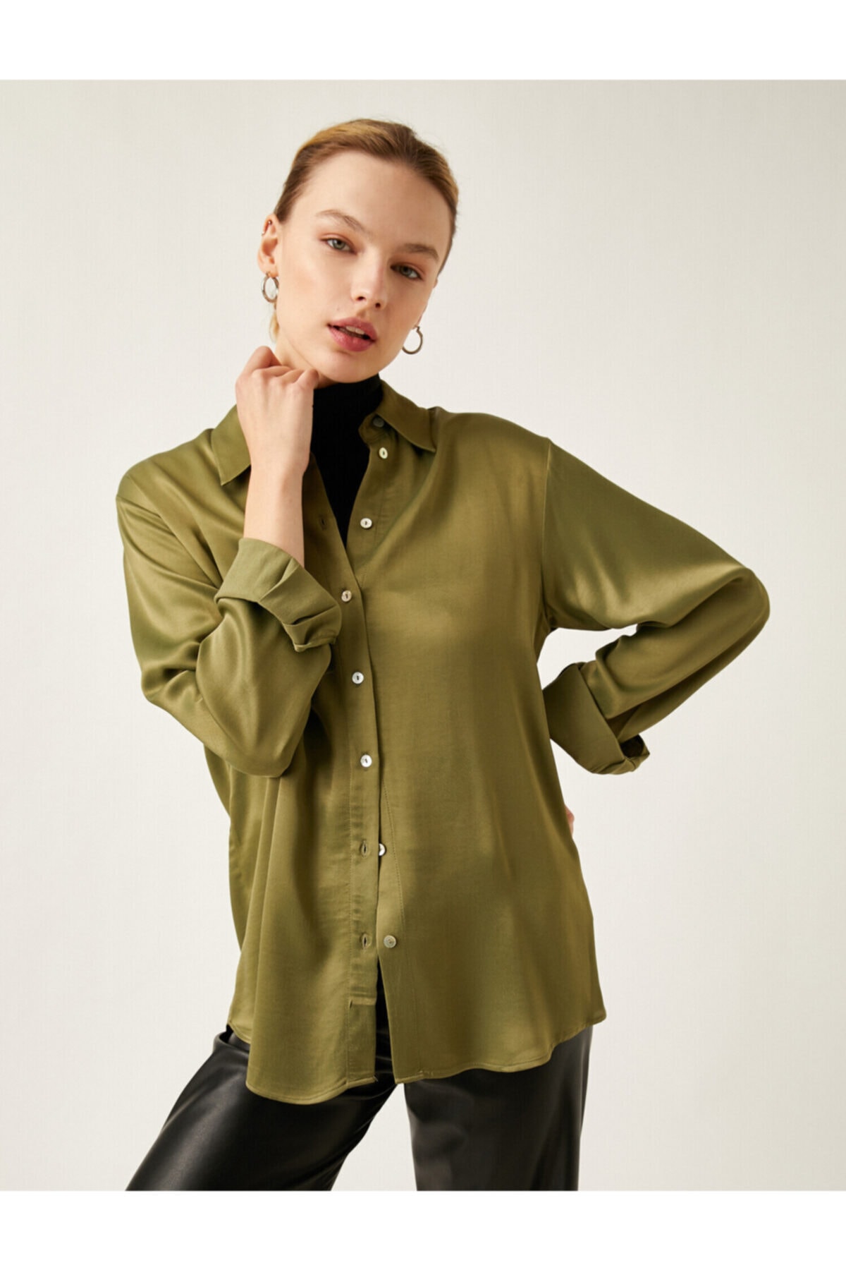 پیراهن کوتون سبز آستین بلند ویسکوز | | نمایندگی کوتون