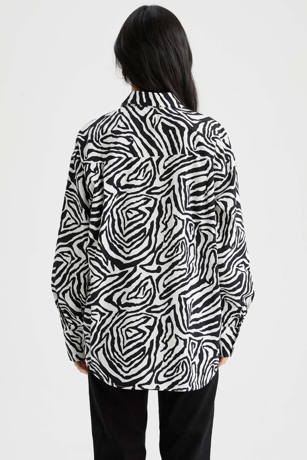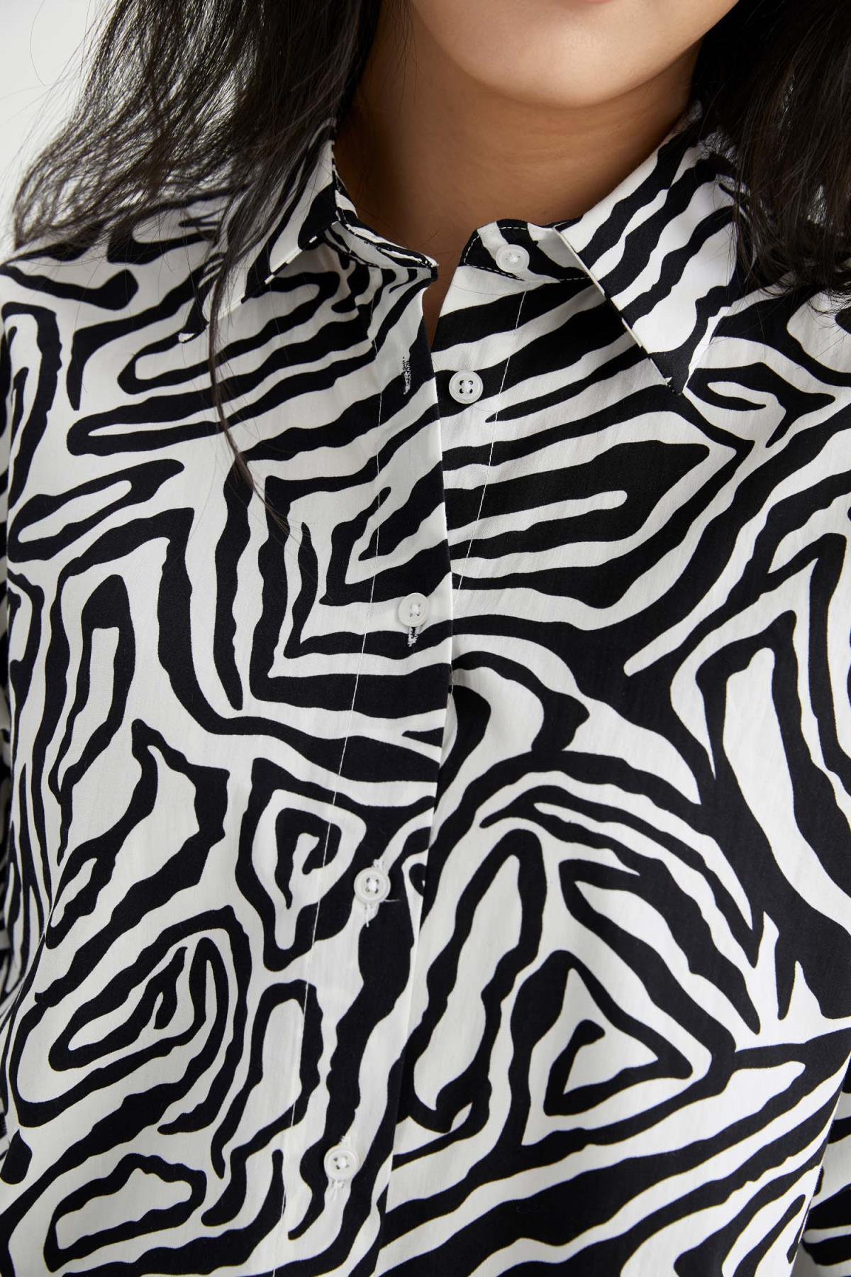 تیشرت آستین بلند پوپلین طرح گورخری سایز بزرگ، ۱۰۰٪ پنبه، W7702az22sm