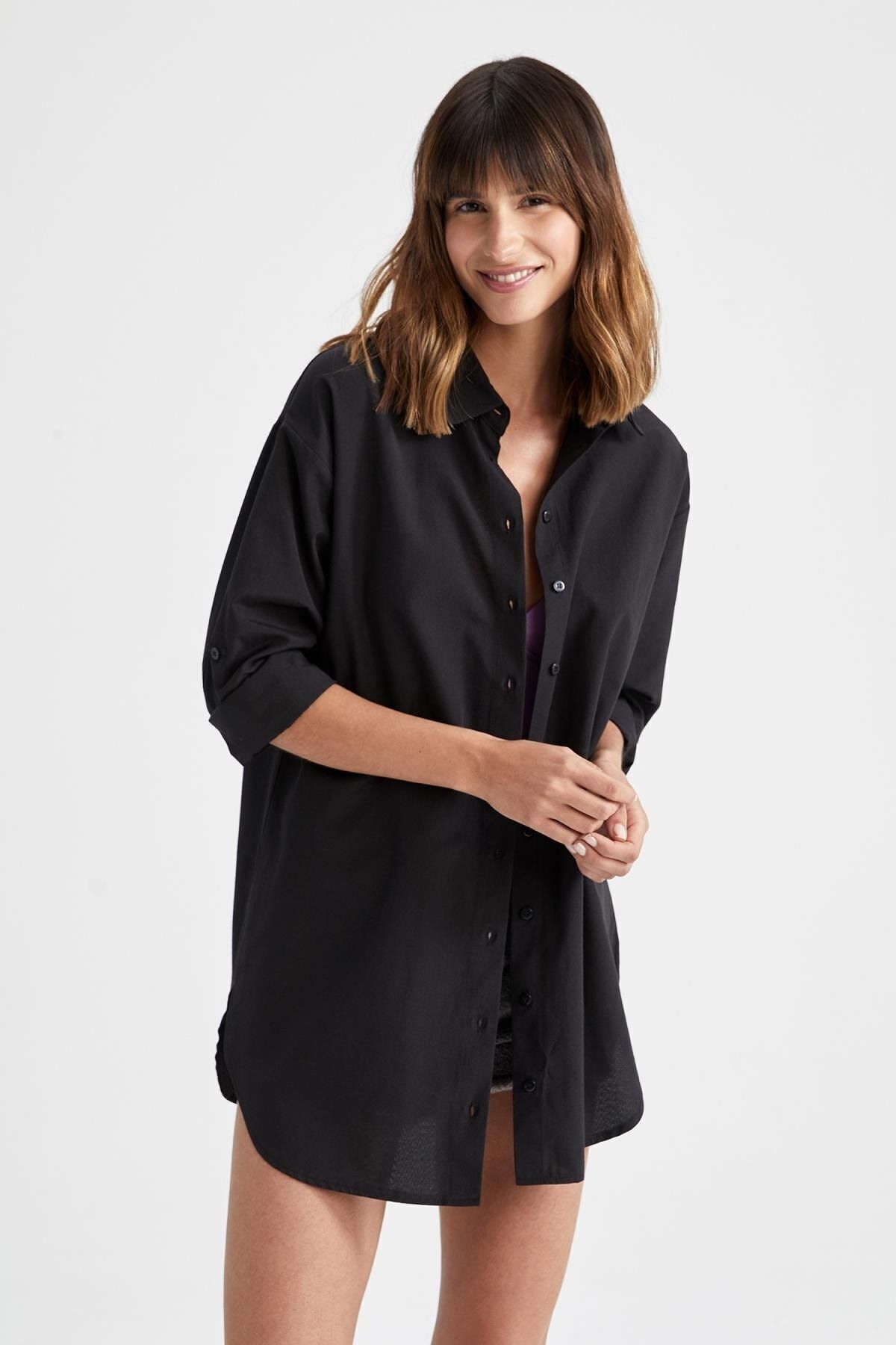 خانه زنانه پوشاک پیراهن پیراهن زنانه مشکی دفکتو | TYC00432908028 Defacto