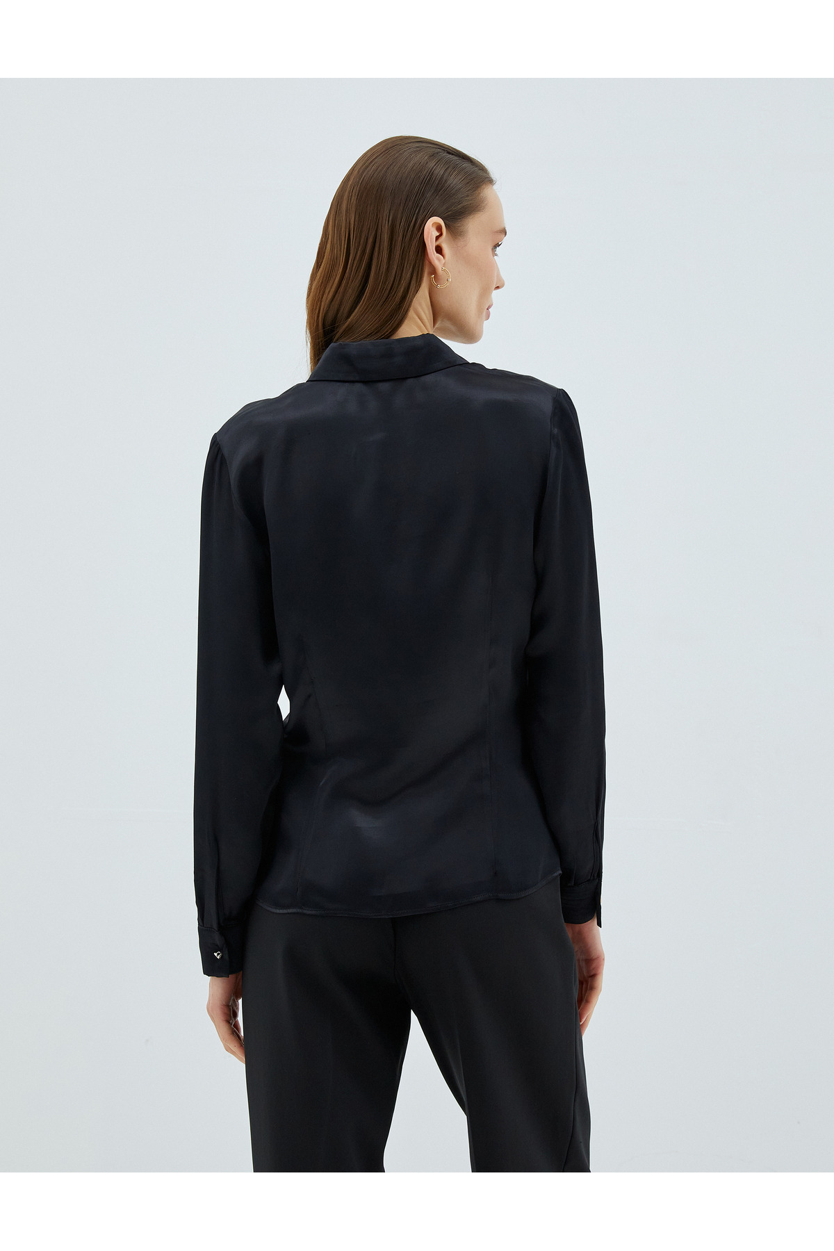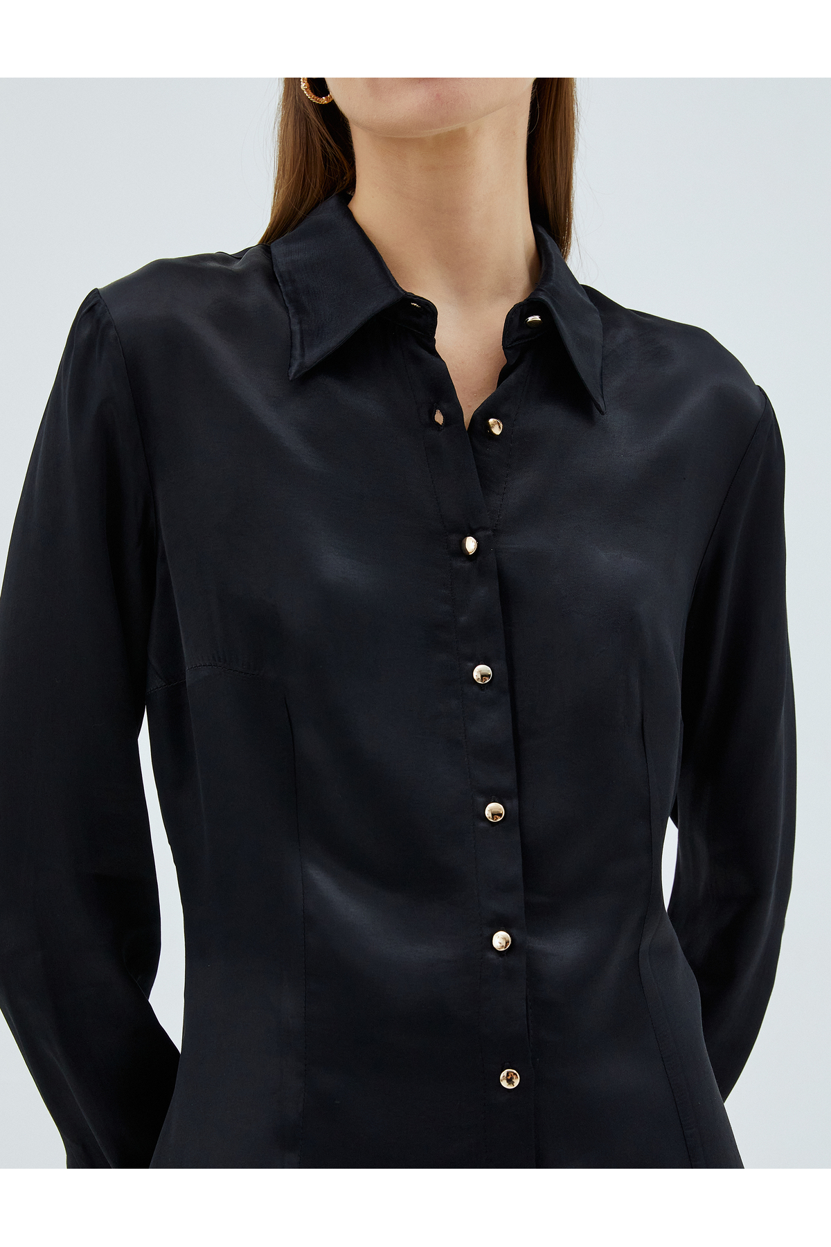پیراهن زنانه آستین بلند دکمهدار طلایی متالیک 3sak60001uw مشکی مشکی