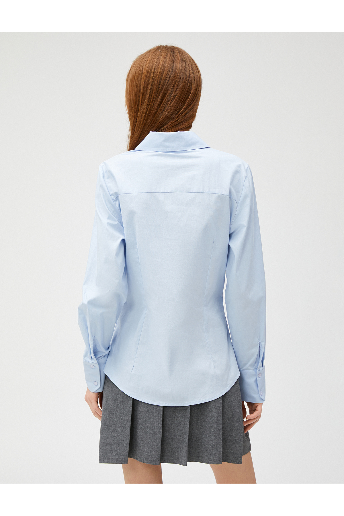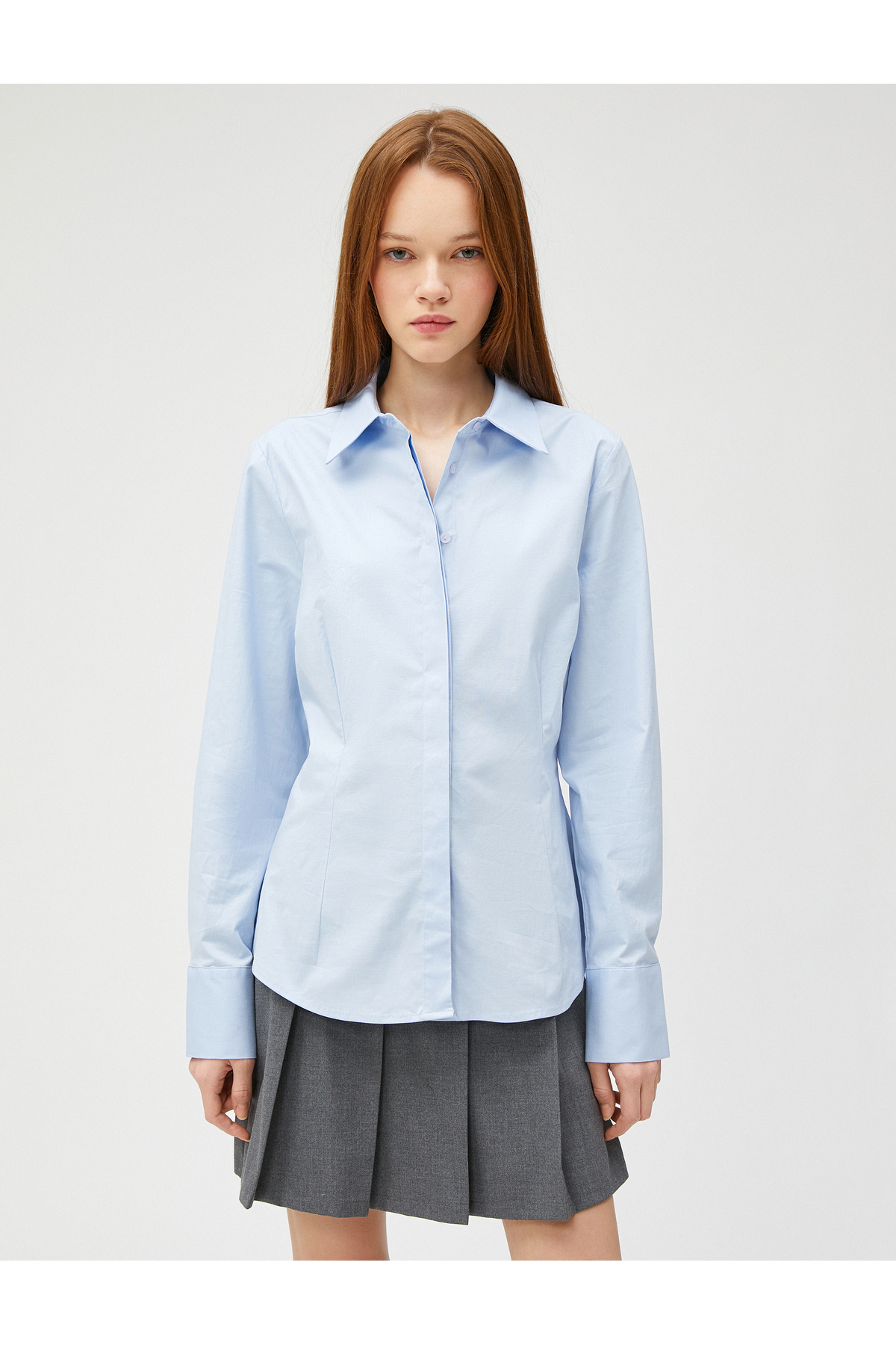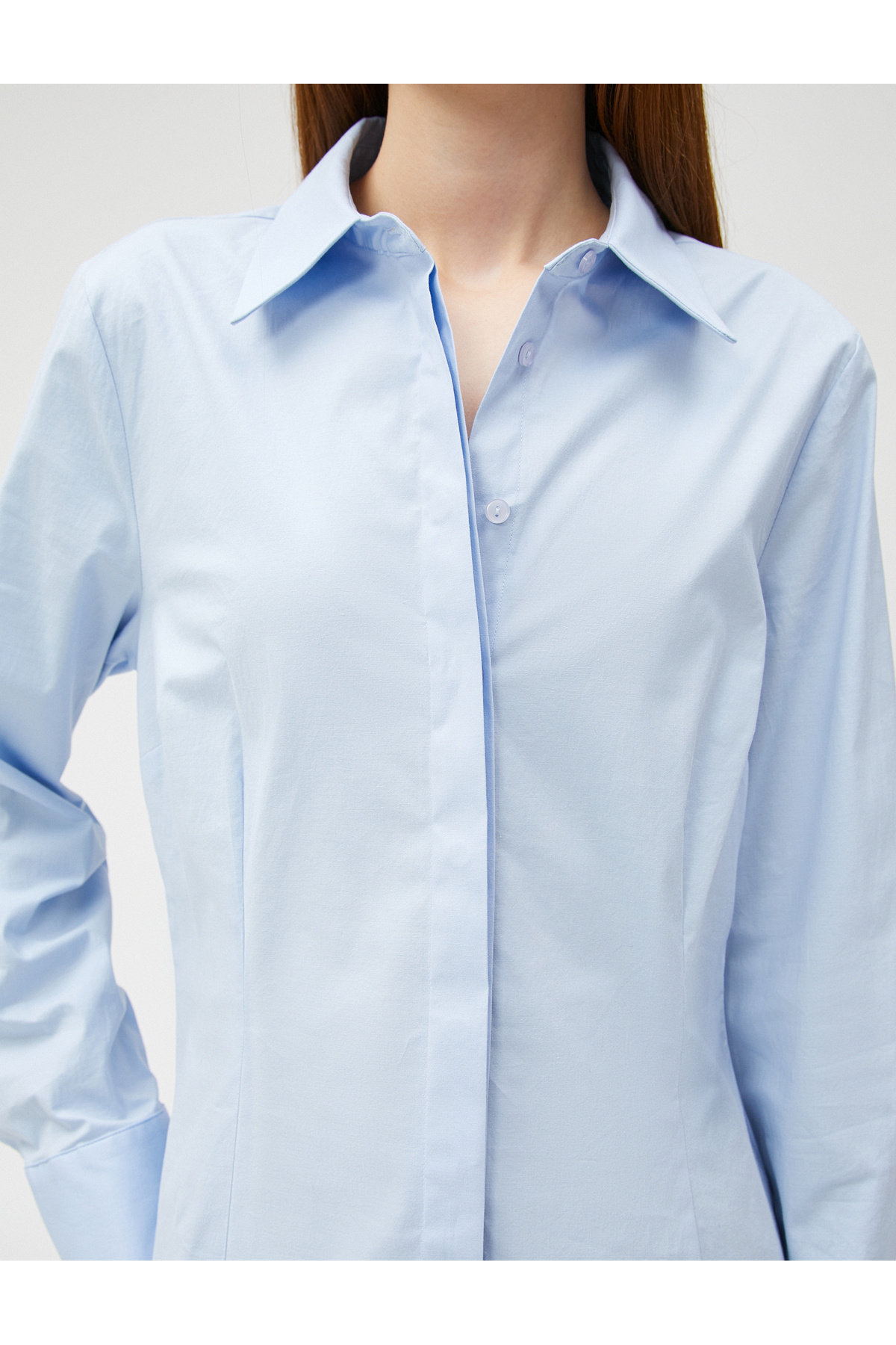 پیراهن پوپلین ساده با دکمههای مخفی و آستینهای بلند