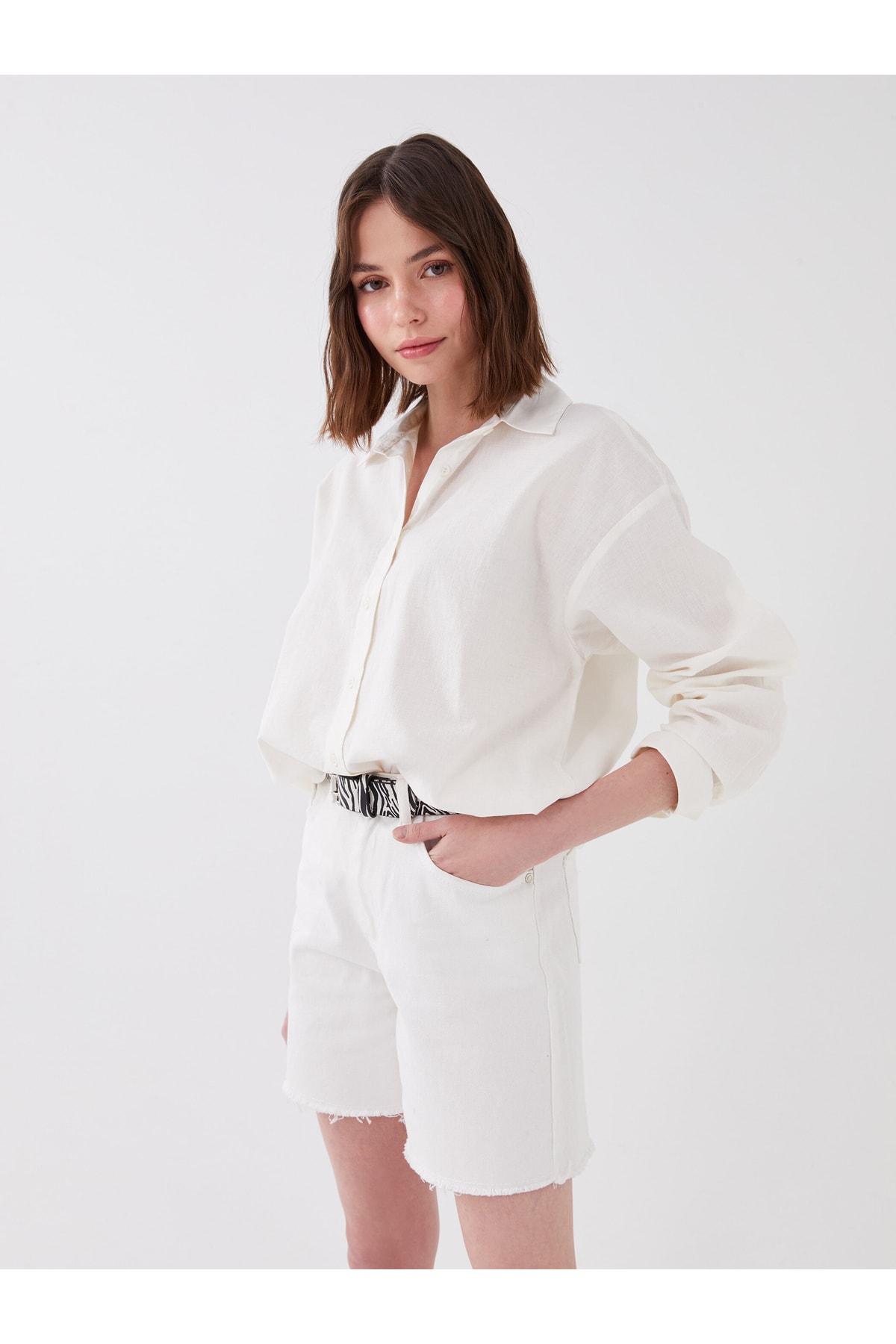 پیراهن ال سی وایکیکی سفید آستین استاندارد لینن | | نمایندگی ال سی وایکیکی