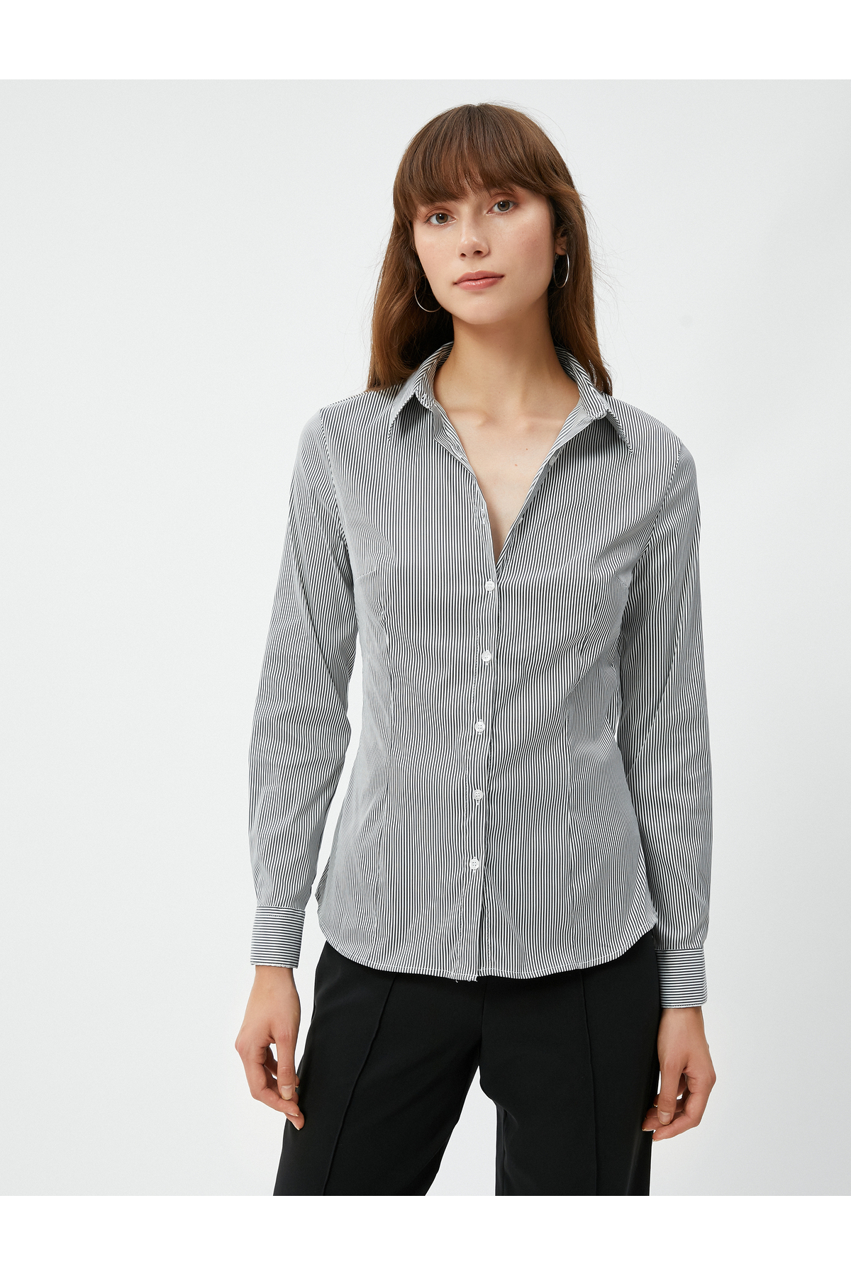 پیراهن آستین بلند دکمه‌دار ساده اسلیم فیت