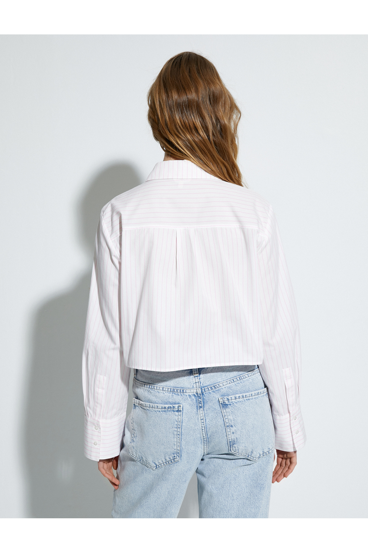 پیراهن پوپلین کوتاه، آستین بلند، دارای جیب، دکمهدار، یقه کلاسیک