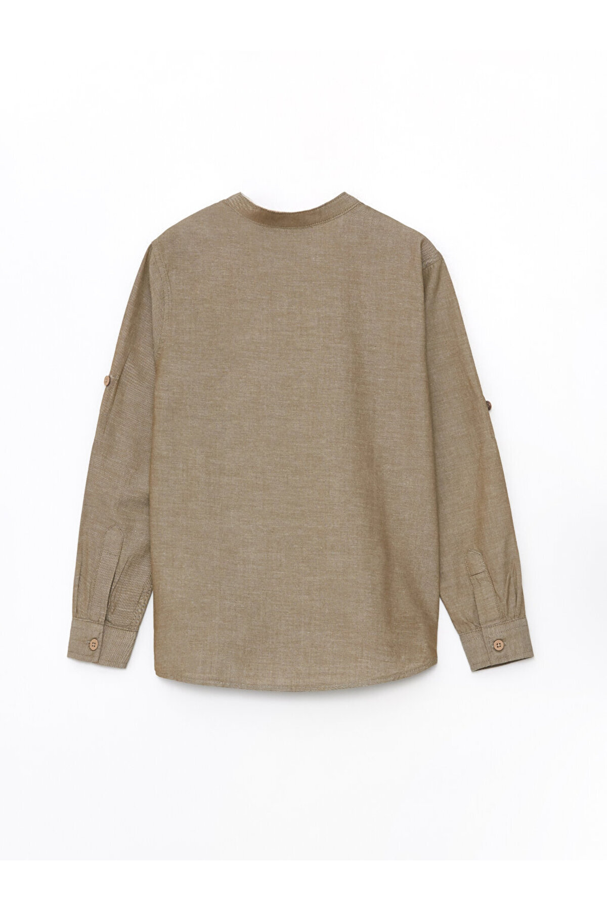 پیراهن آستین بلند پسرانه یقه ماندارین ساده LCW بچگانه