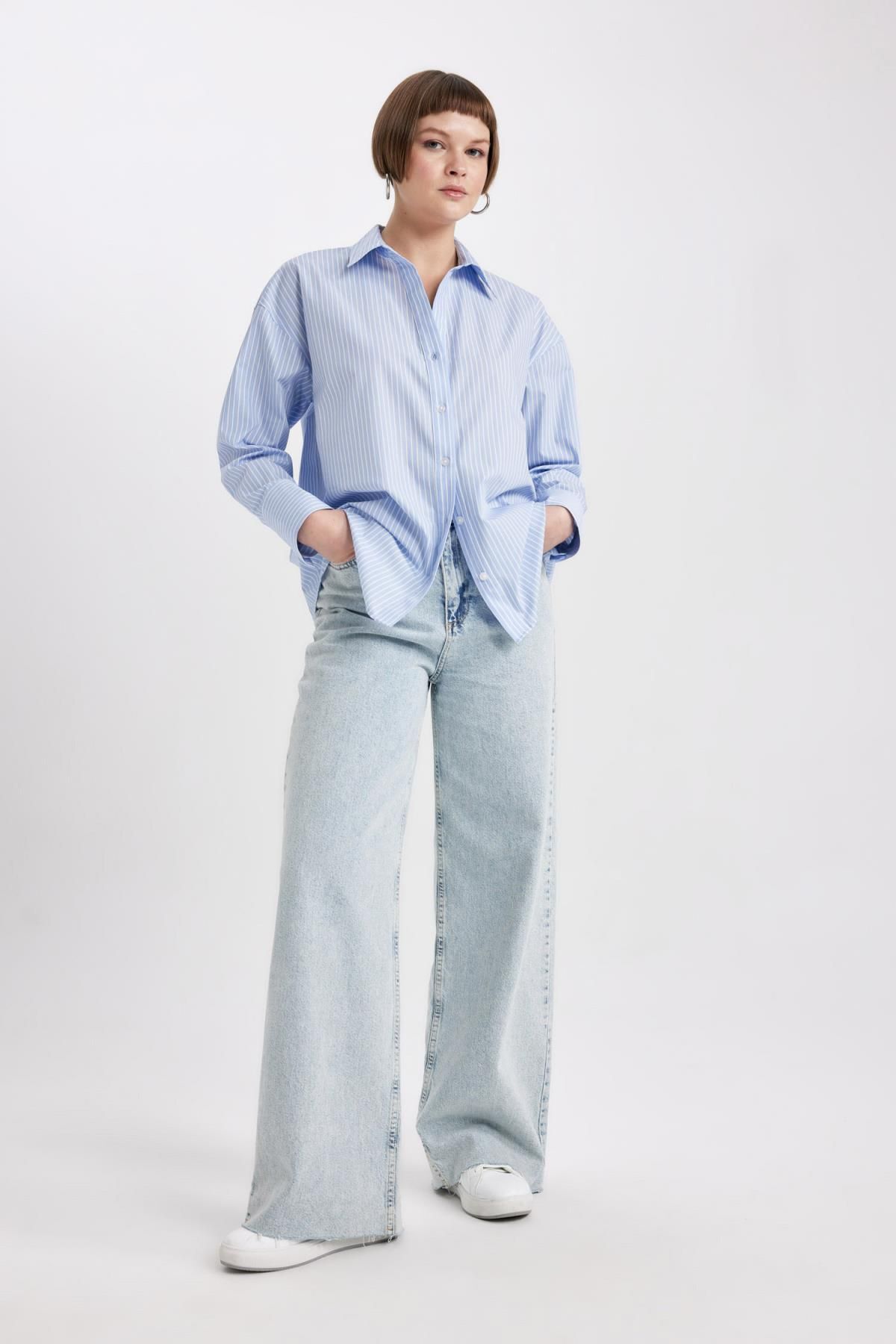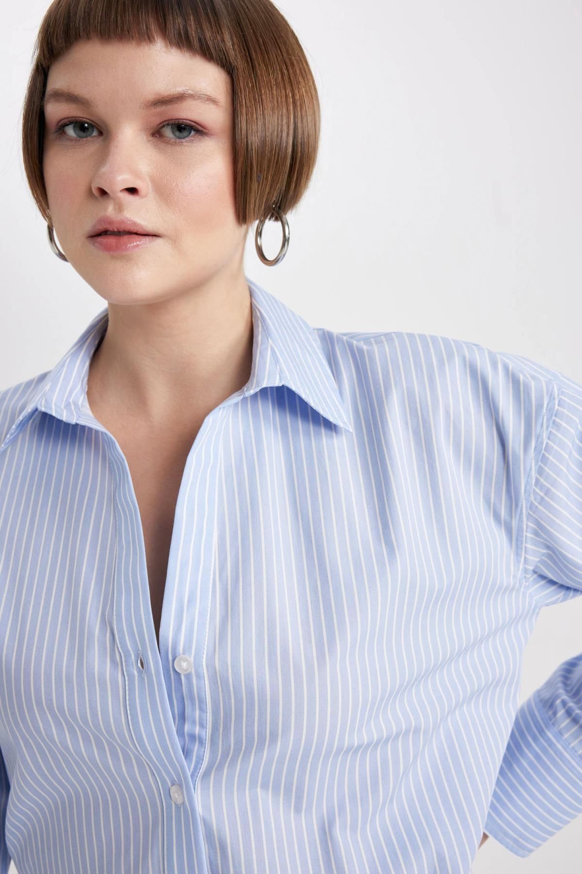 پیراهن آستین بلند پوپلین راه راه گشاد سایز بزرگ W7702az24sp