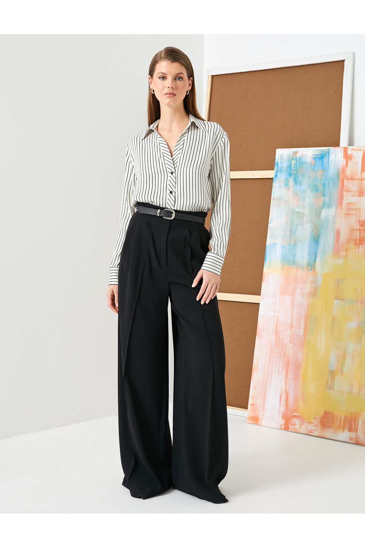 پیراهن آستین بلند، دکمهدار، برش استاندارد، جنس ویسکوز.