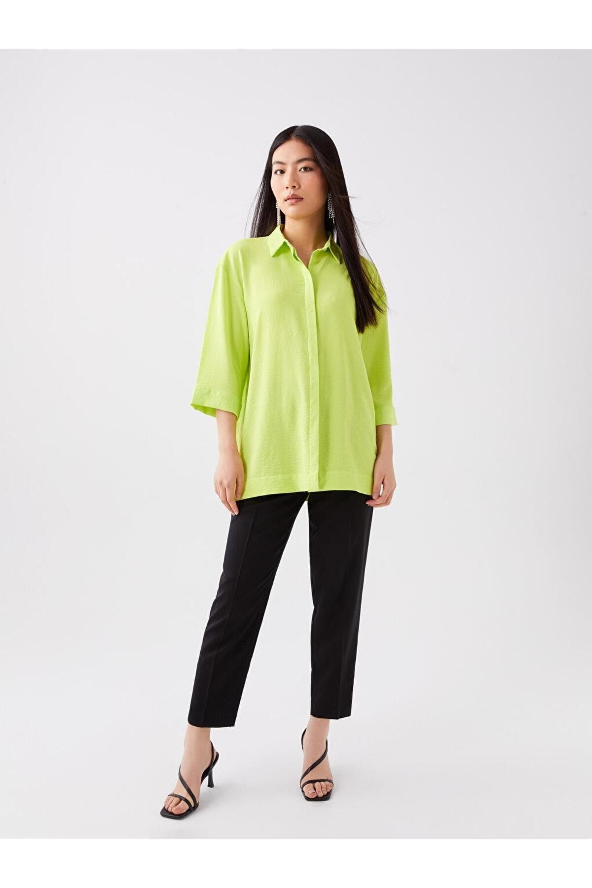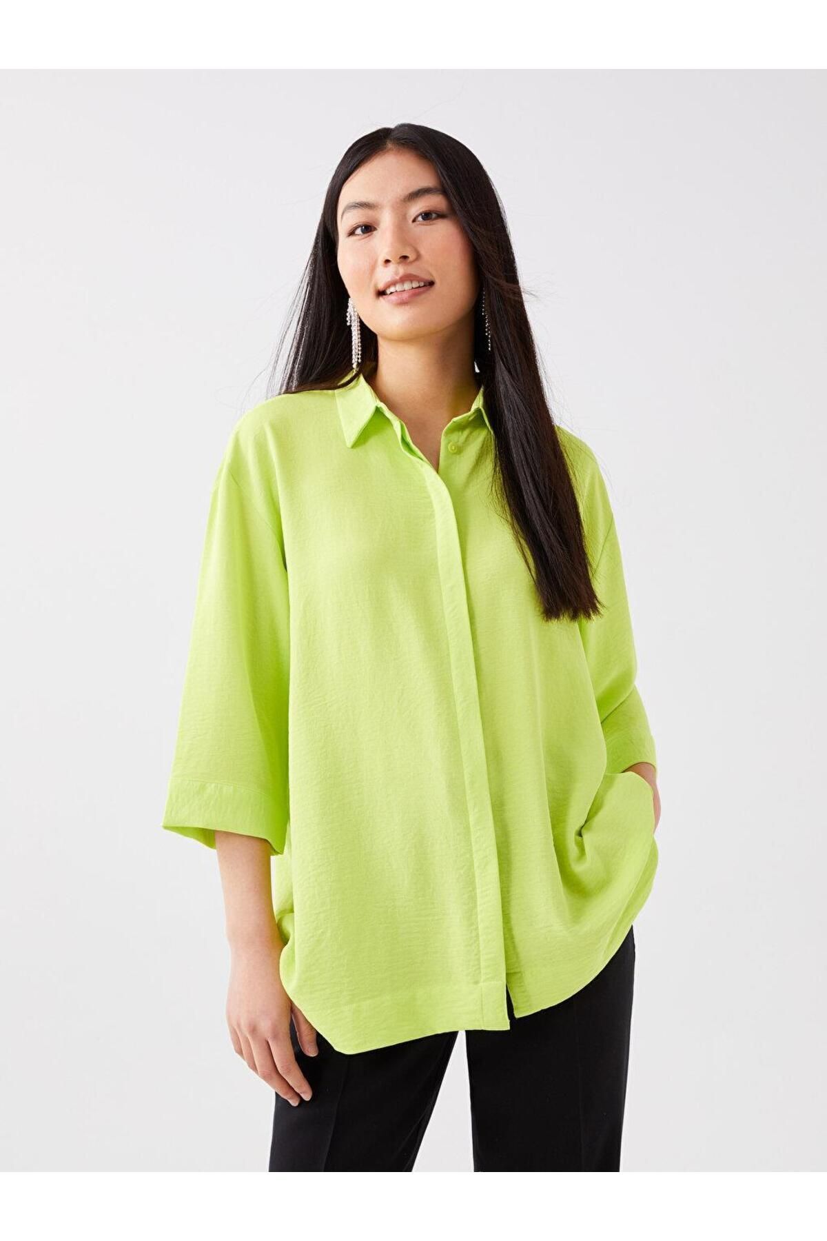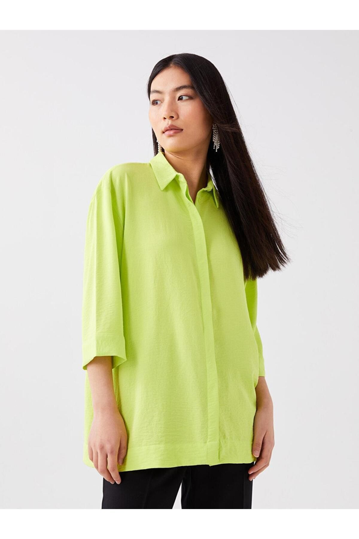 پیراهن ال سی وایکیکی سبز آستین بلند ویسکوز | | نمایندگی ال سی وایکیکی