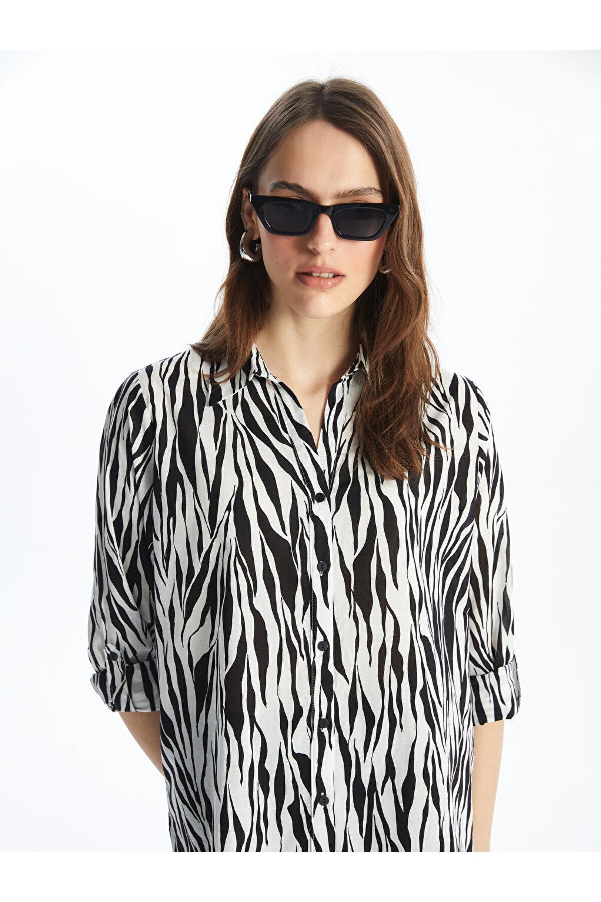 پیراهن زنانه پوپلین آستین بلند طرحدار LCW