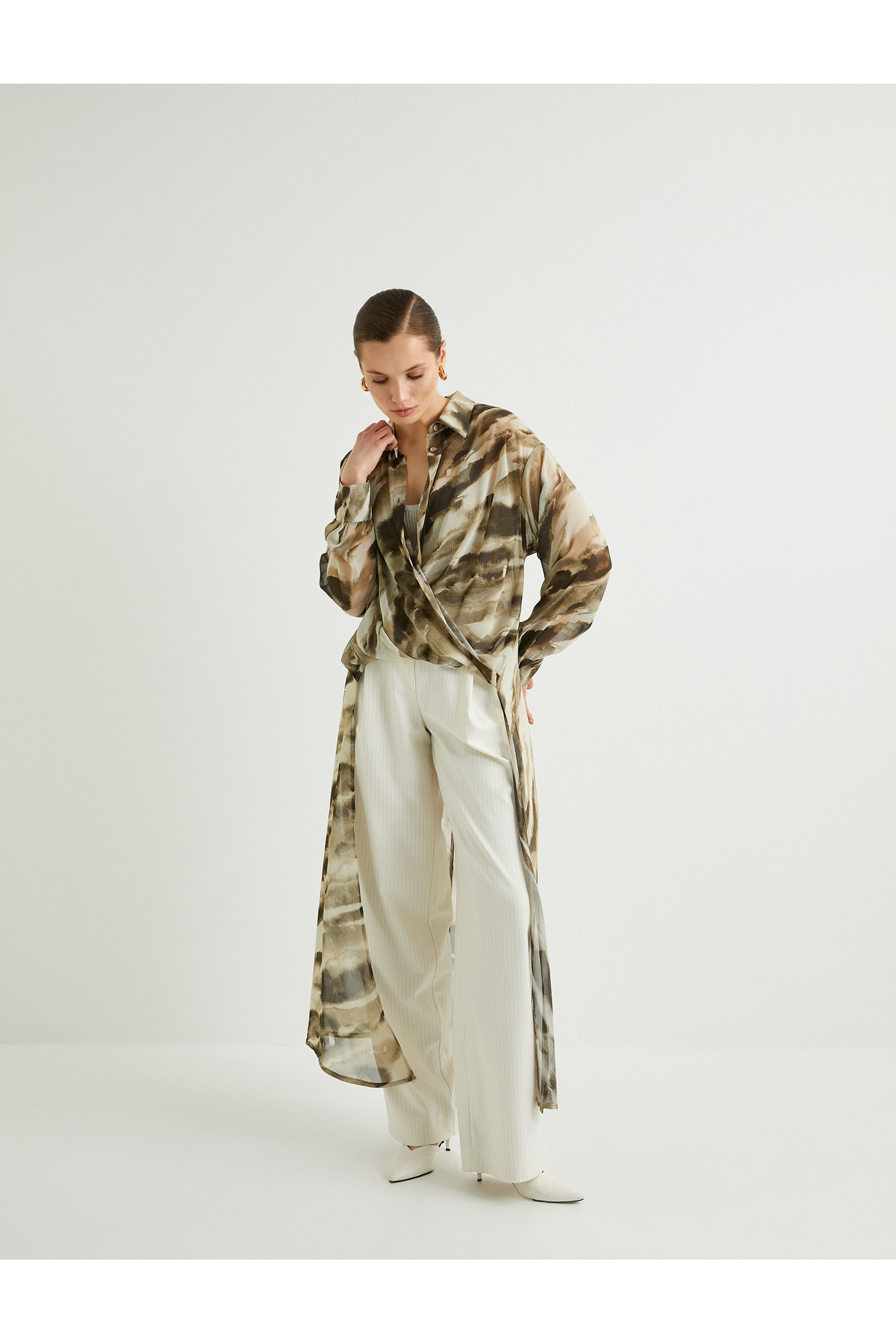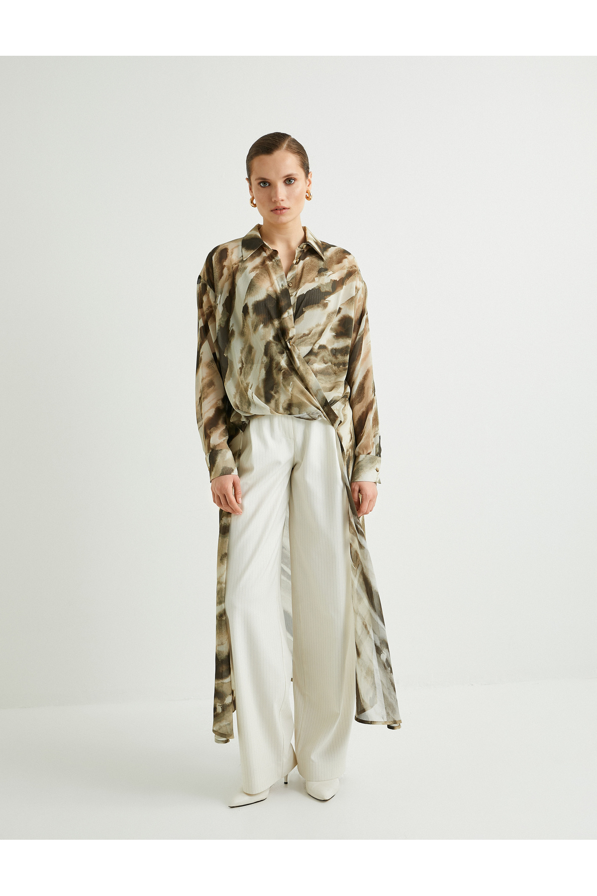 پیراهن شیفون، برش نامتقارن، دکمهدار، یقه کلاسیک