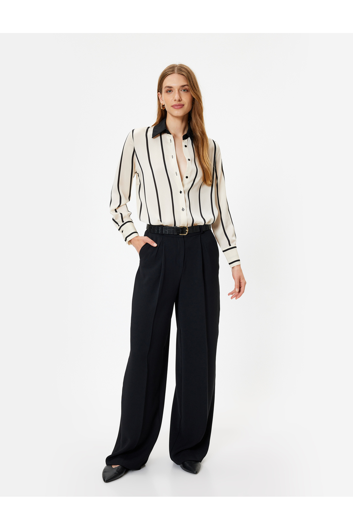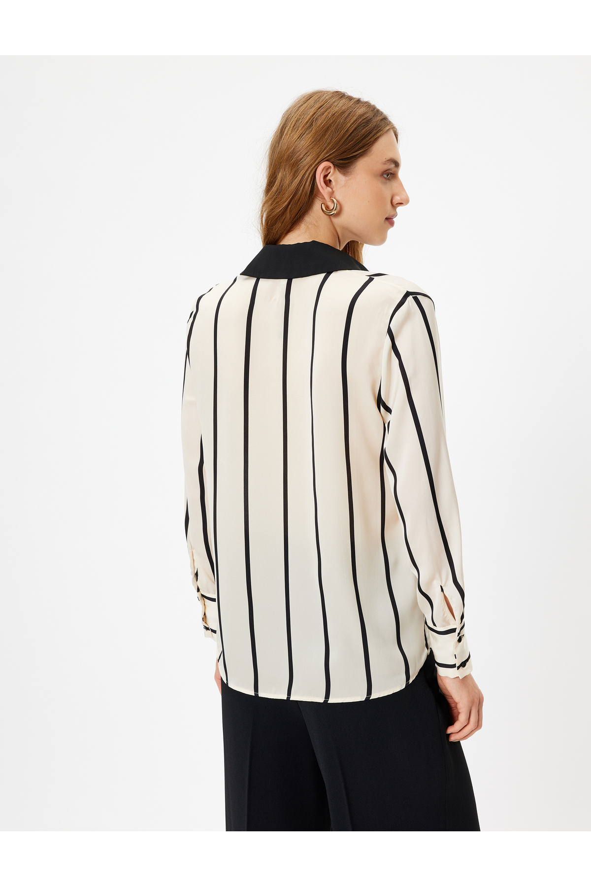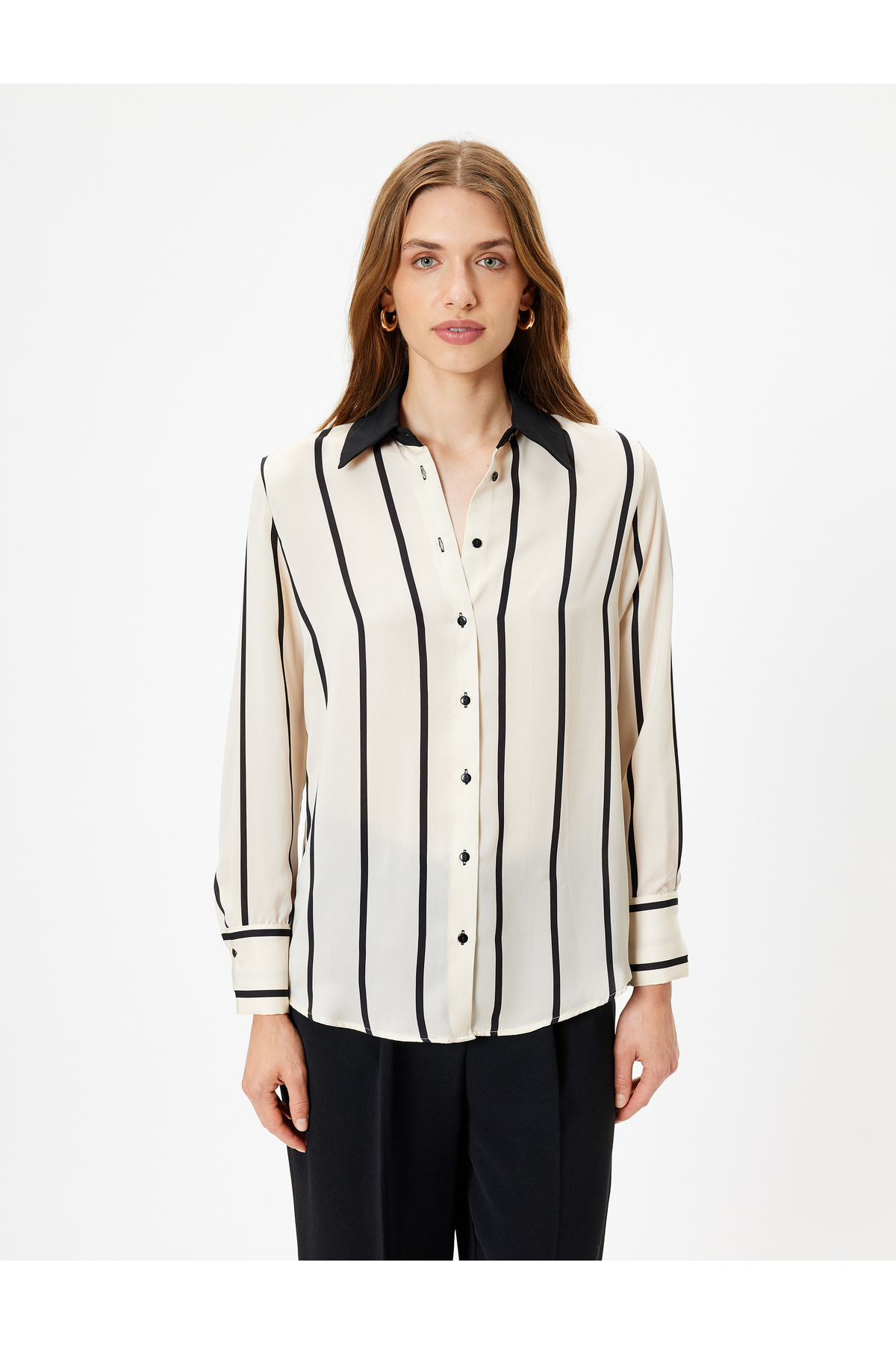 پیراهن آستین بلند با رنگهای متضاد و یقه کلاسیک.