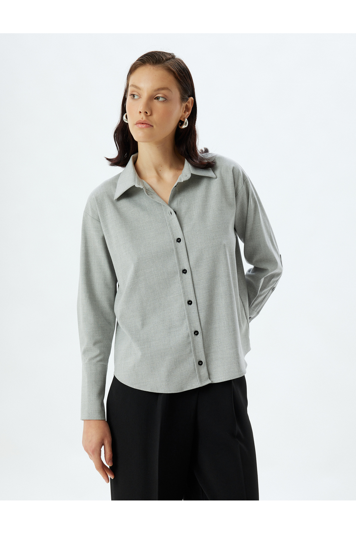 پیراهن آستین بلند با سرآستین‌های بلند دو دکمه.