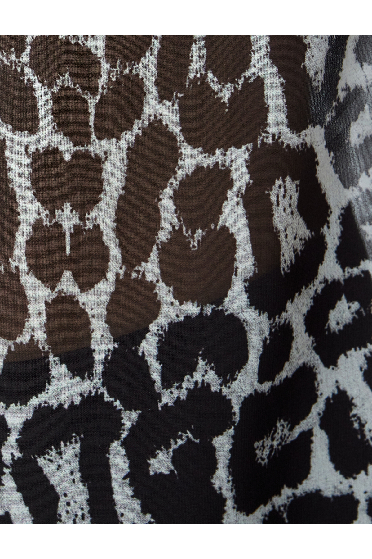 پیراهن شیفون طرح پلنگی، آستین بلند، دارای جیب، سایز معمولی