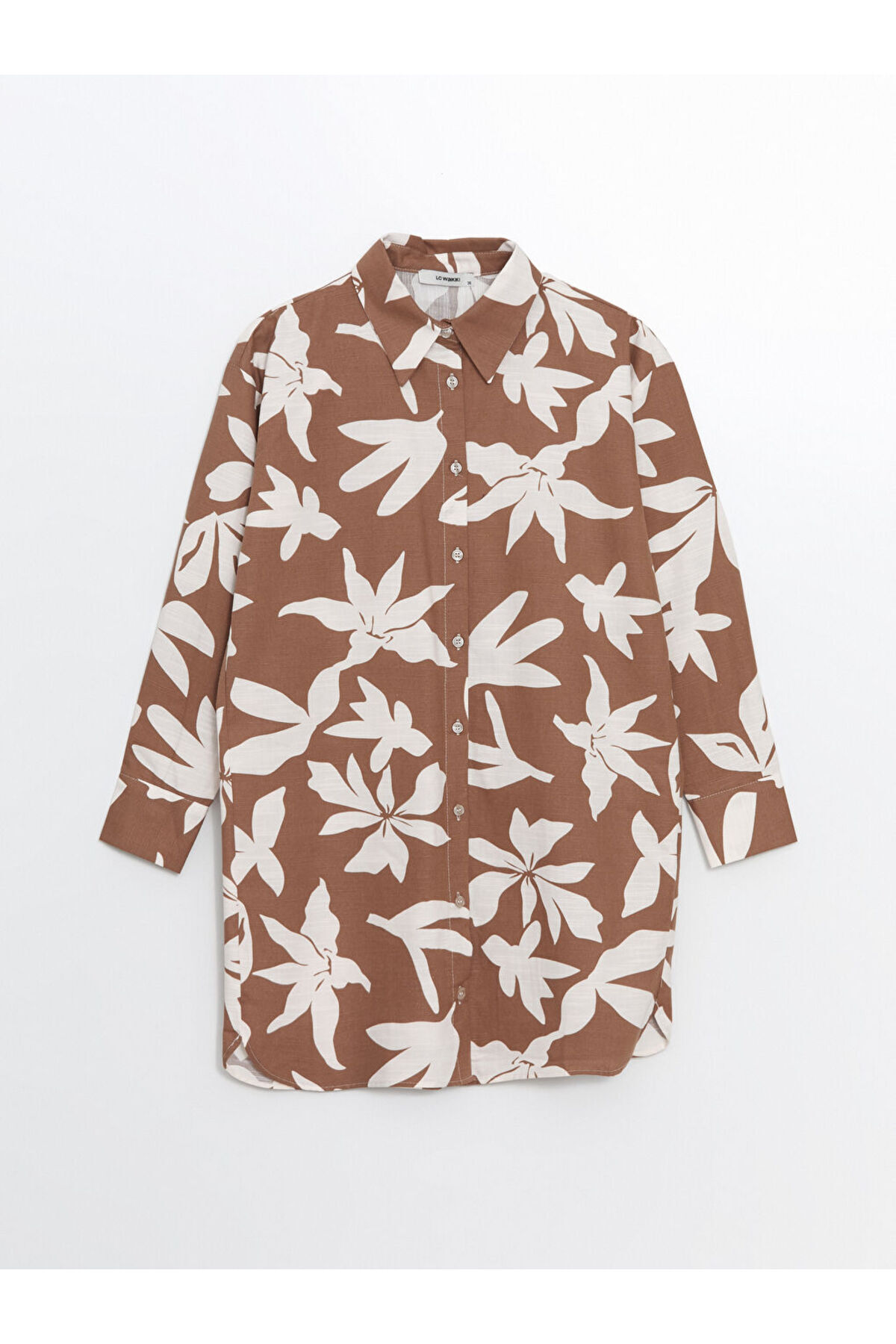 پیراهن ال سی وایکیکی قهوه ای آستین بلند پنبه – پلی استر | | نمایندگی ال سی وایکیکی