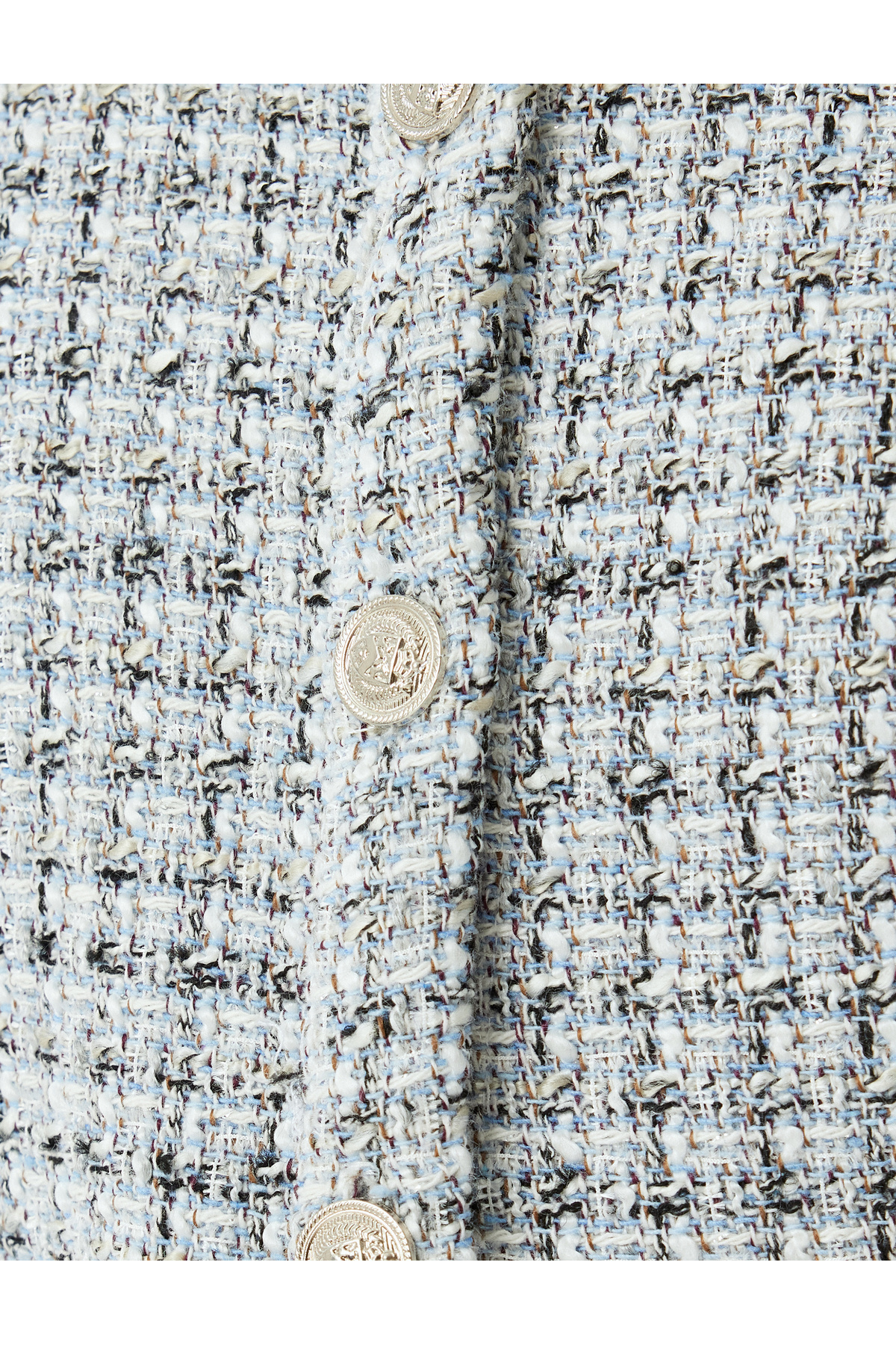 ژاکت تویید کوتاه با یقه گرد، دکمه‌دار، آستین بلند و جیب