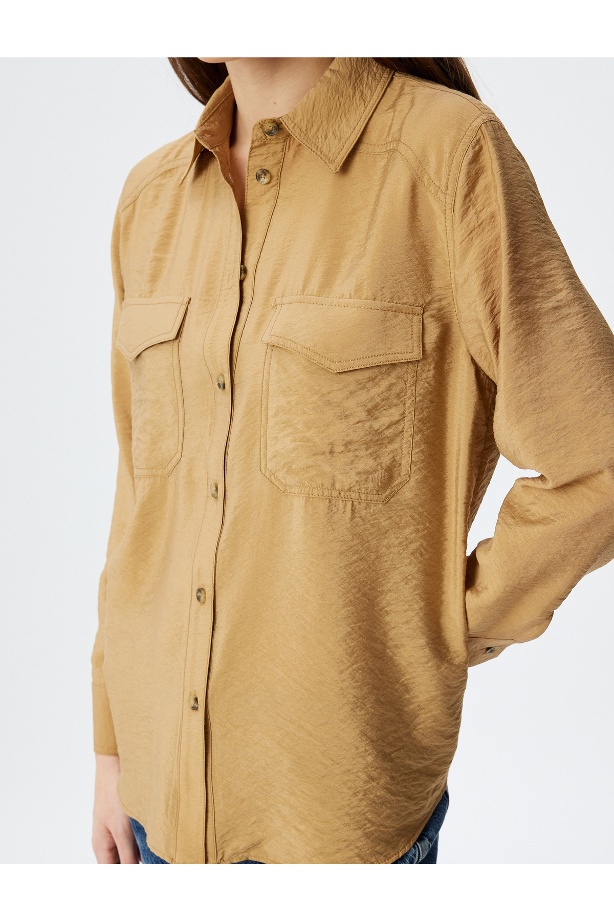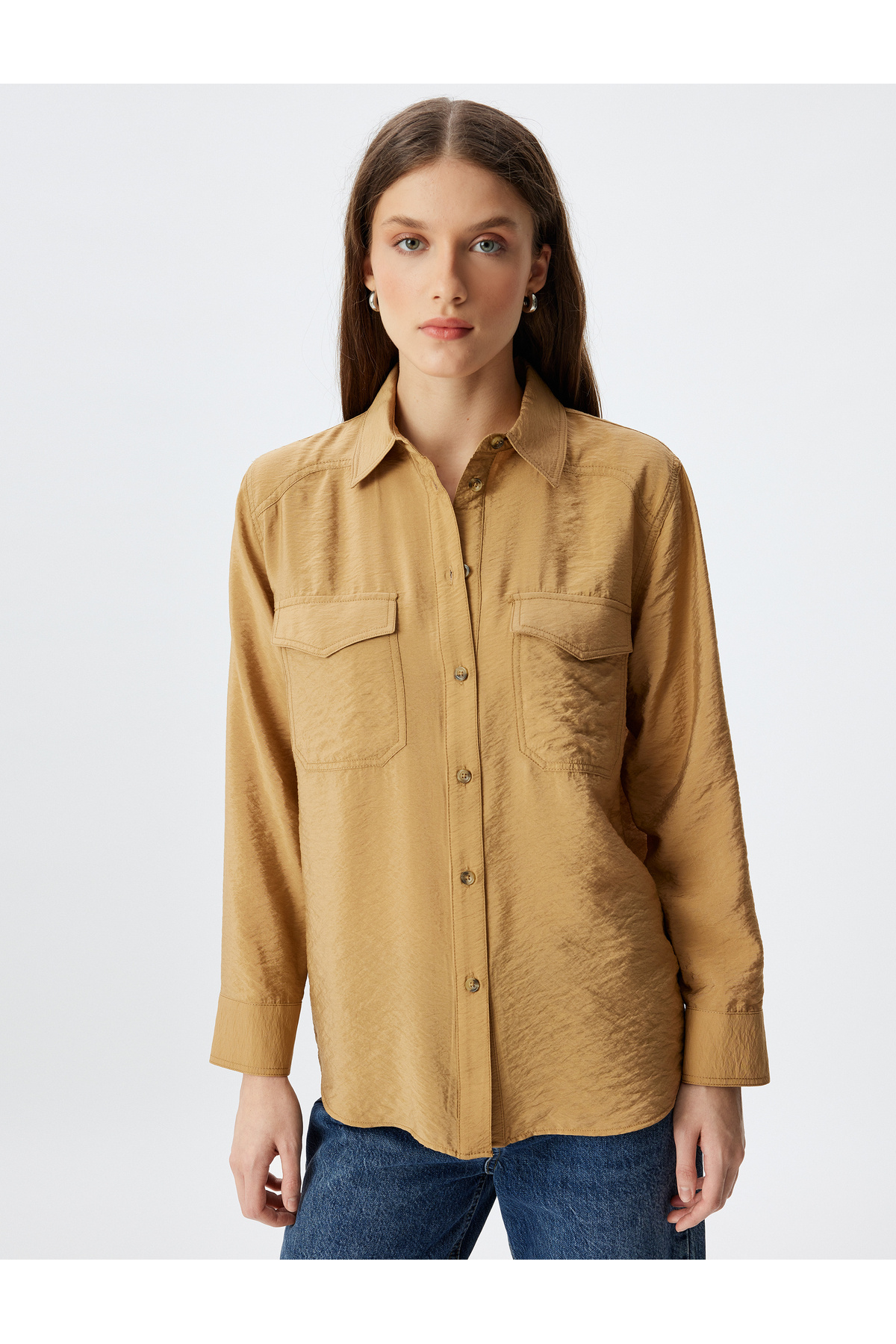 پیراهن گشاد ویسکوز با جیبهای کناری، بافتدار، آستین بلند