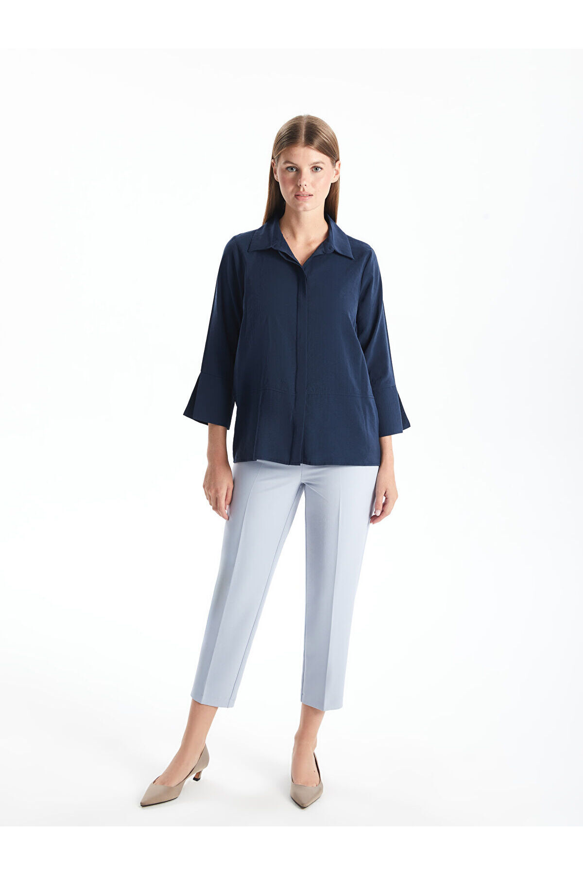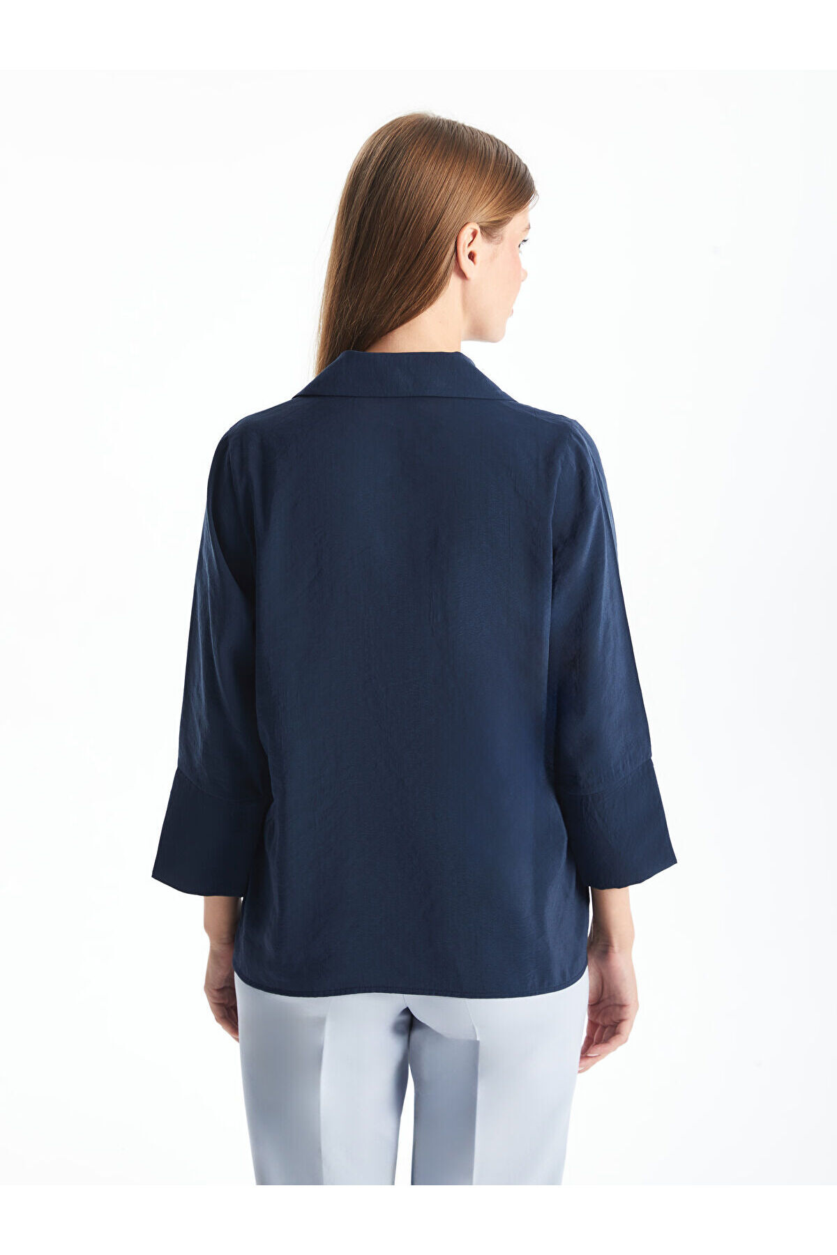 پیراهن زنانه آستین بلند ساده کلاسیک LCWAIKIKI به رنگ سرمهای