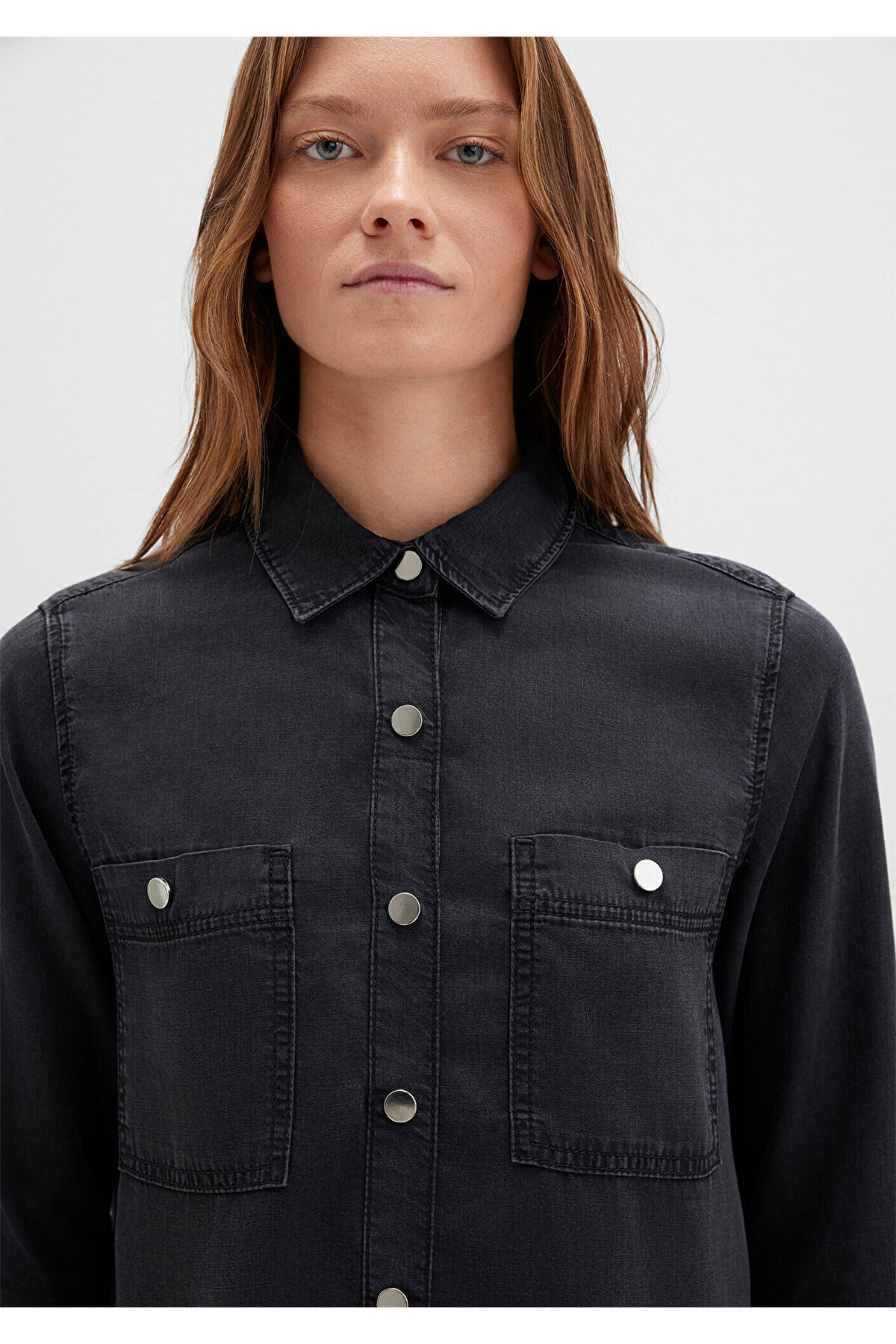 پیراهن ماوی خاکستری آستین استاندارد لیوسل مخلوط شده | | نمایندگی ماوی