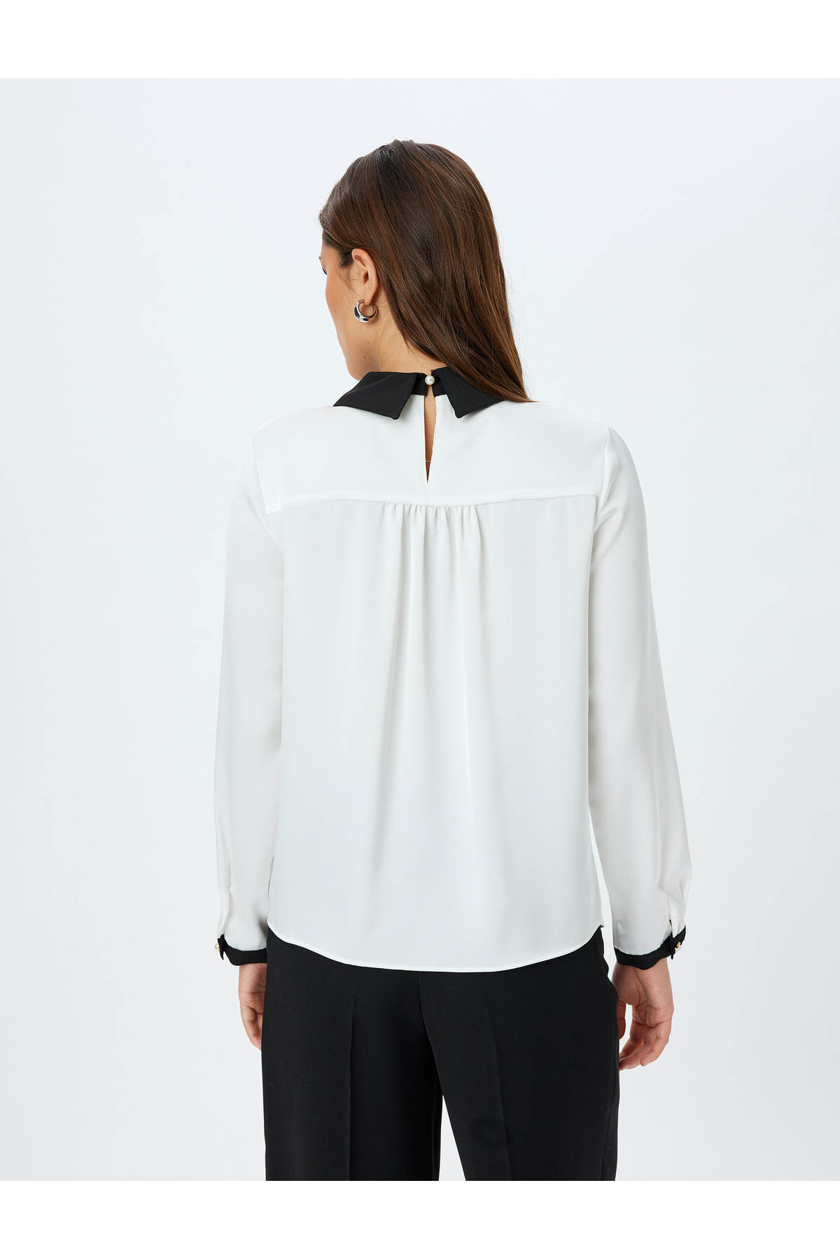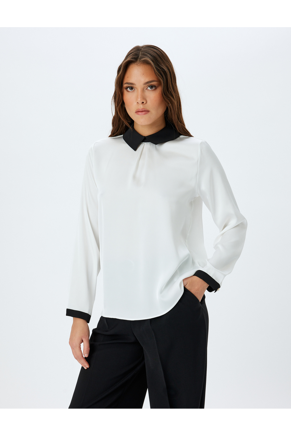 بلوز آستین بلند یقه‌دار با رنگ متضاد