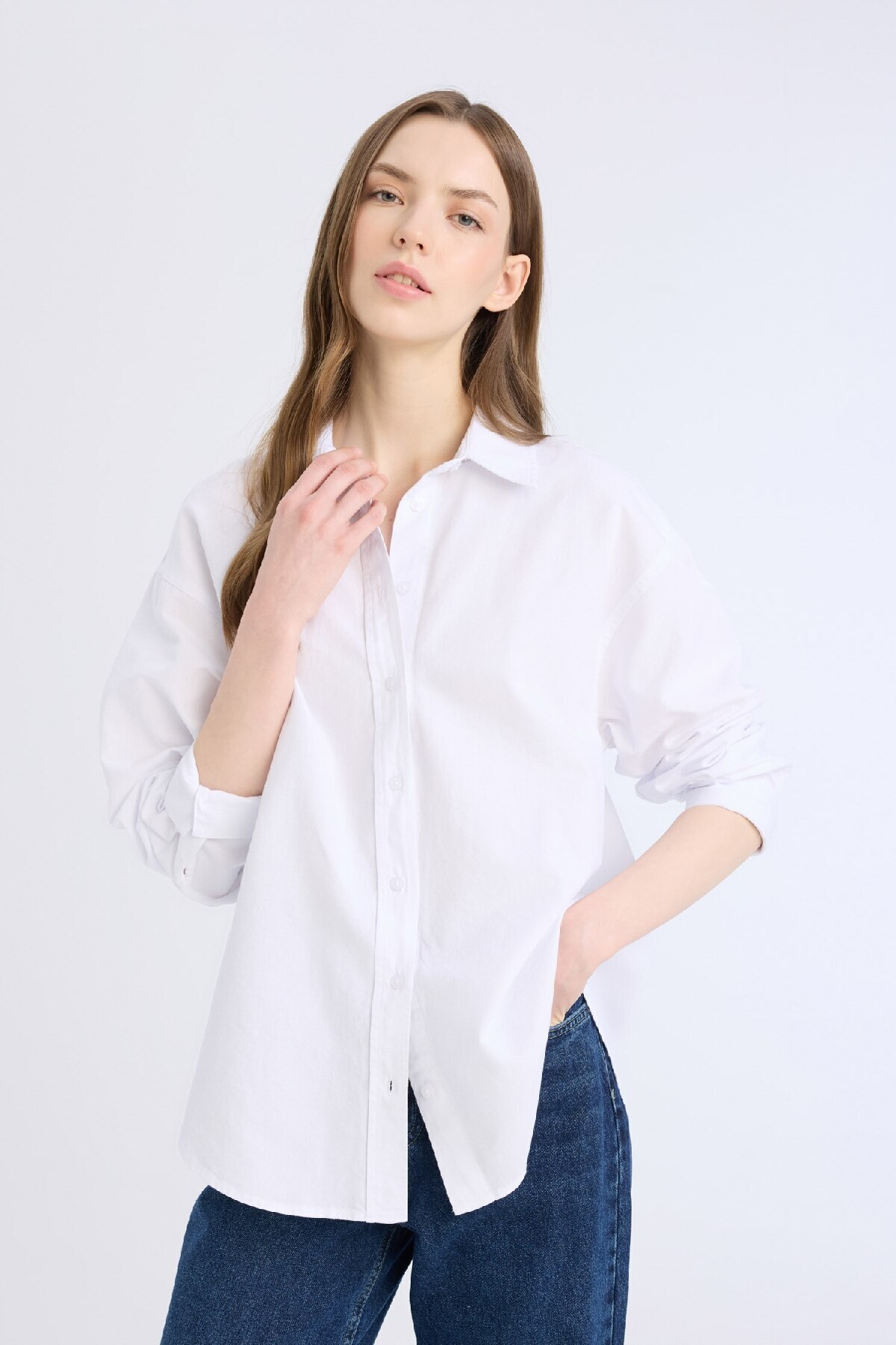 پیراهن آستین بلند گشاد و ساده آکسفورد سایز بزرگ، ۱۰۰٪ پنبه، Z4893az25sp