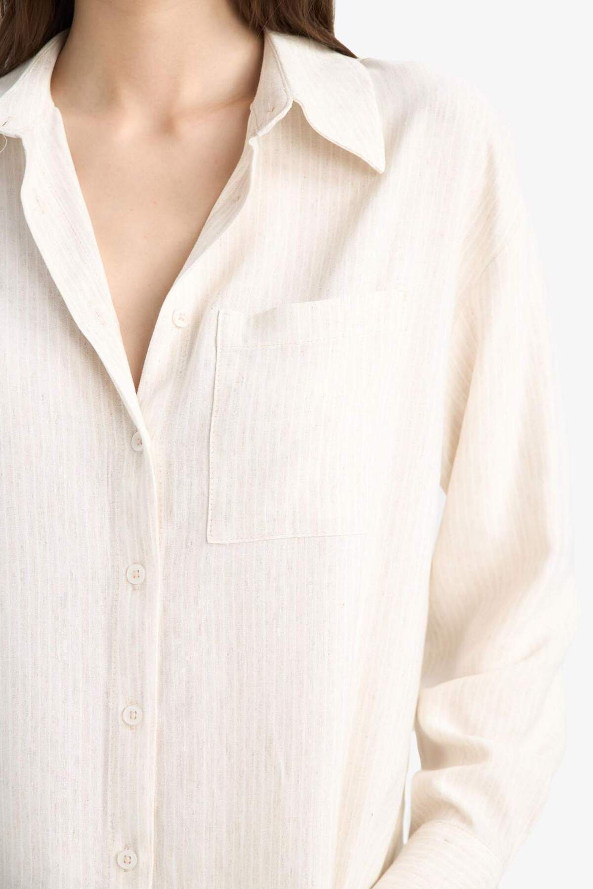 پیراهن آستین بلند گشاد و گشاد کتانی طرح ترکیبی E2212ax25sp
