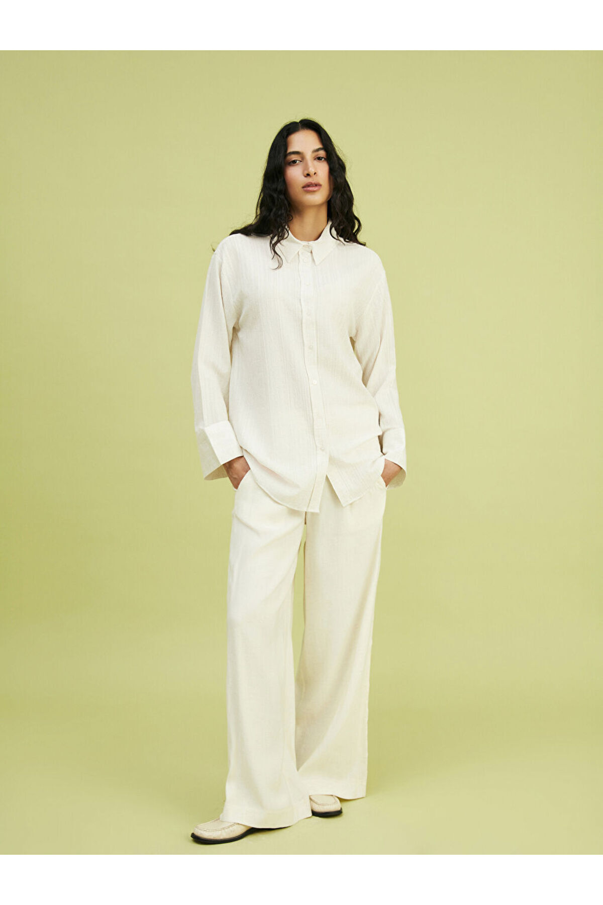 پیراهن ال سی وایکیکی اکرو آستین بلند مخلوط لینن | | نمایندگی ال سی وایکیکی