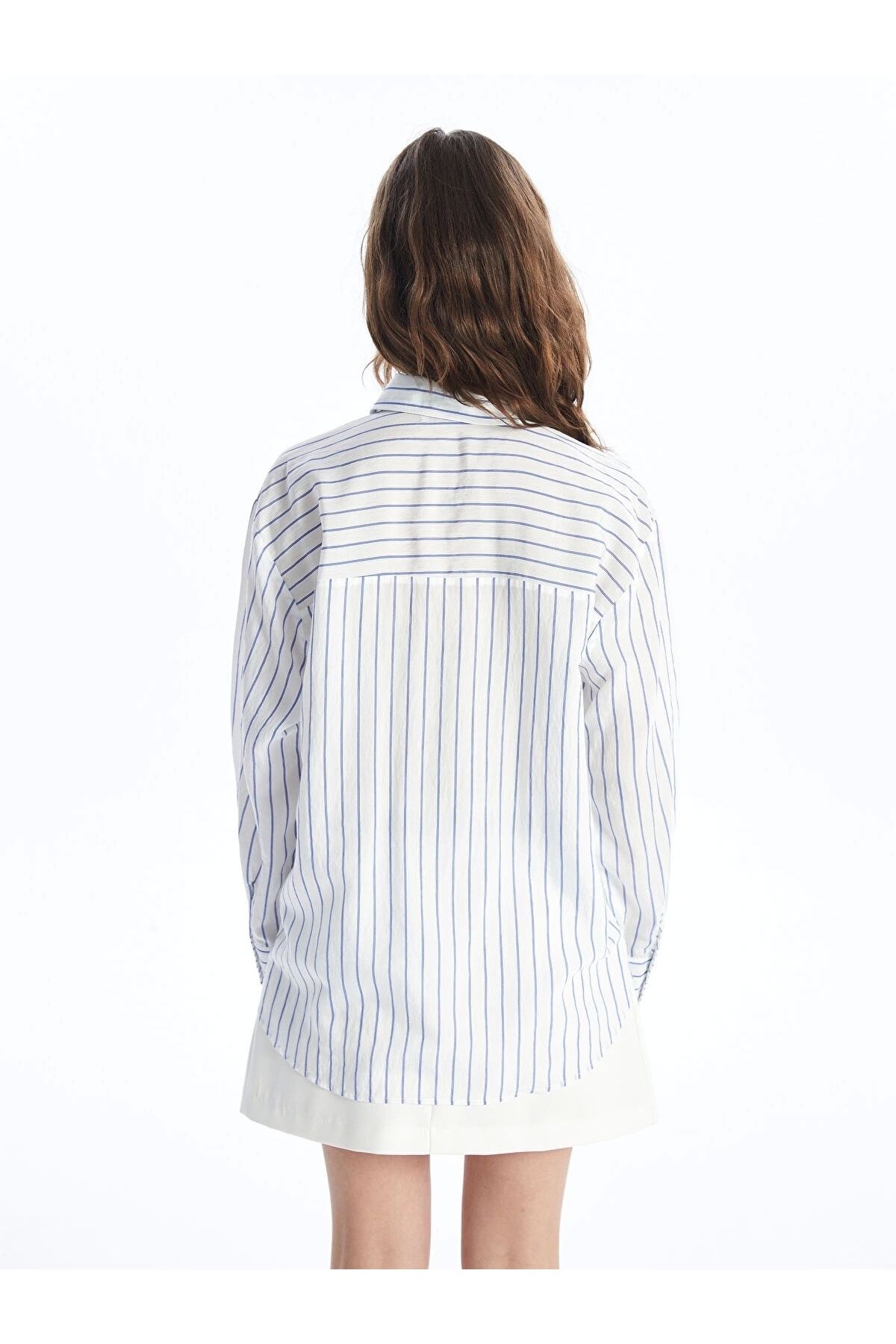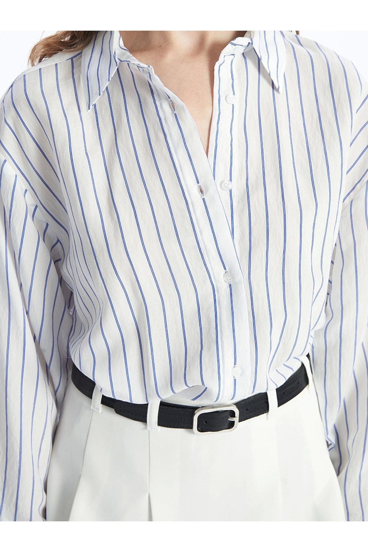 پیراهن زنانه آستین بلند راه راه سفید سایز بزرگ LCW Vision